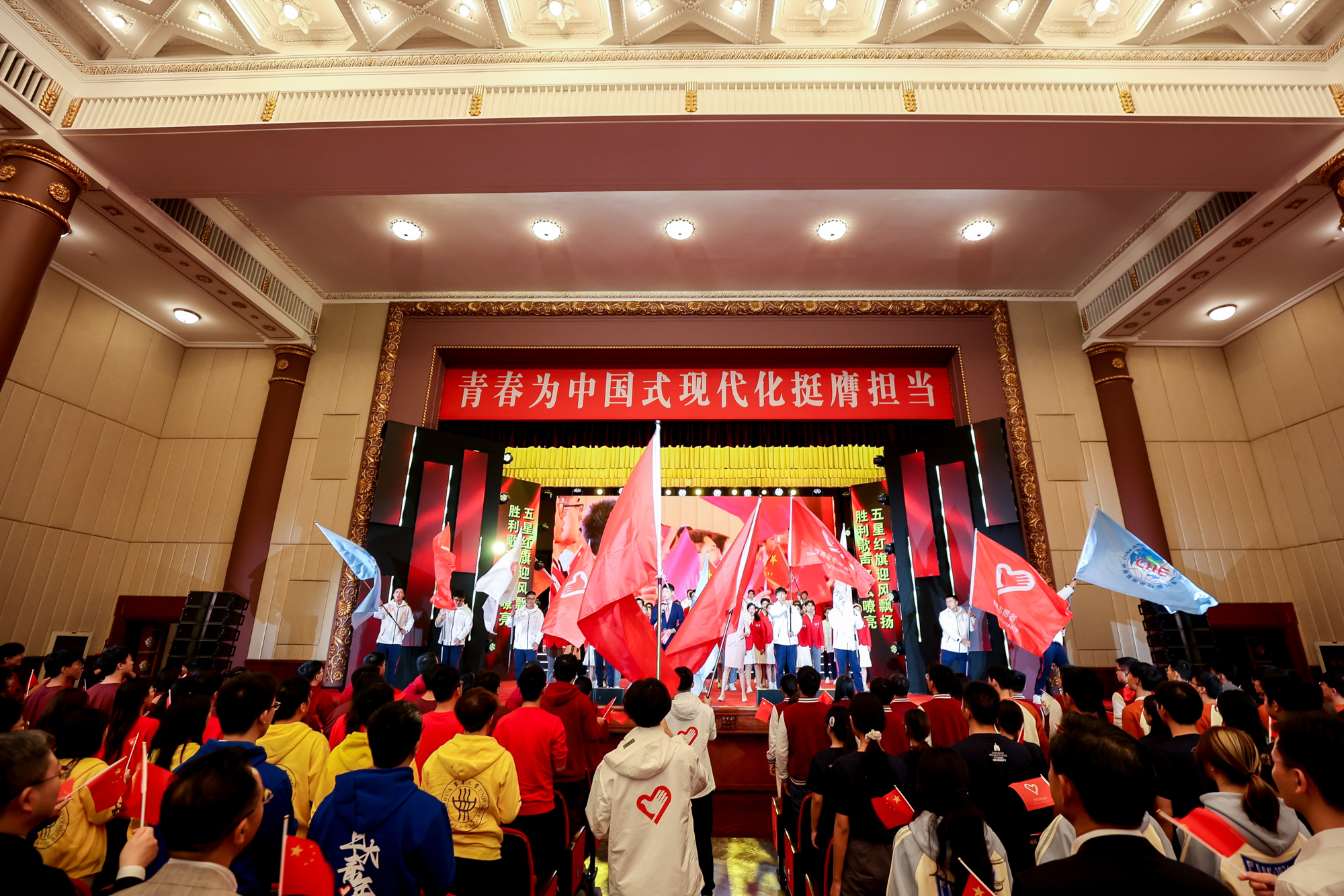 10月15日,第七届中国国际进口博览会志愿者上岗宣誓仪式暨志愿者临时党、团组织成立仪式在上海展览中心友谊会堂举行,“小叶子”们庄严宣誓,志在以青春之姿、奉献之心为祖国挺膺担当。