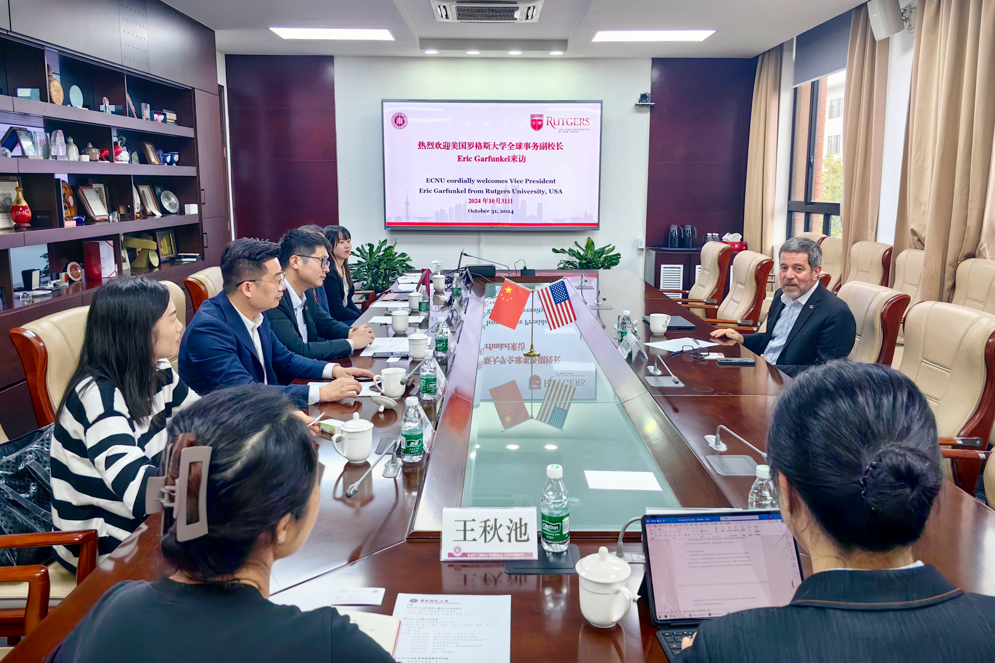 10月31日,华东师大副校长雷启立在普陀校区会见了到访的美国罗格斯大学全球事务副校长Eric Garfunkel教授。哲学系、计算机科学与技术学院、亚欧商学院、国际教育中心、教务处及国际合作与交流处相关人员参与接待。