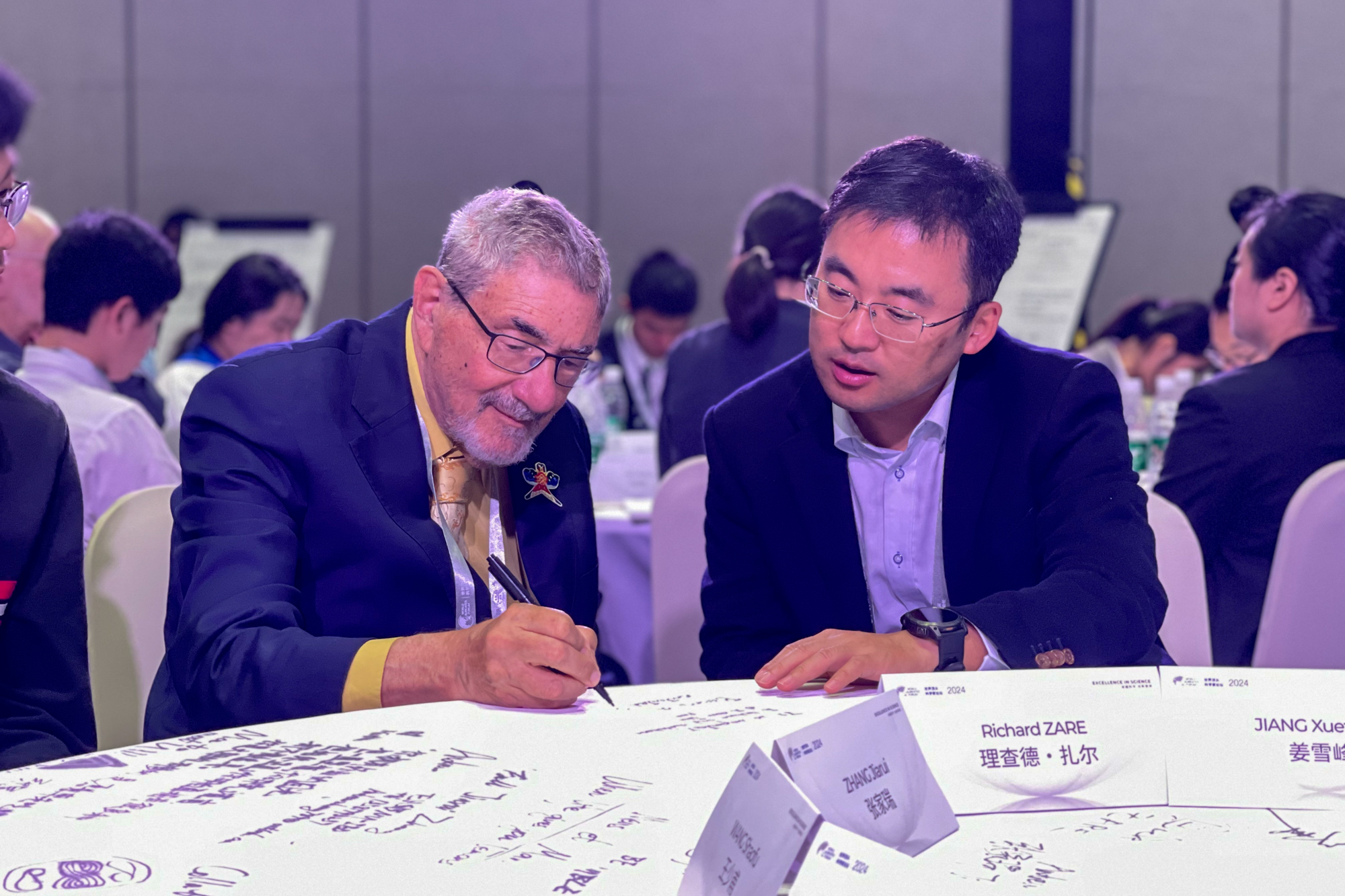 探究生命起源,溯源人类如何造就?畅想人类未来,如何构建人与AI和谐共存的社会?渴求无限物质,如何实现资源的可持续利用?2024世界顶尖科学家科学T大会发布三大挑战性问题,邀请来自全国的100名SCI-Ter与全球科学家共同思考,10人一组在桌布上记录思维轨迹,绘就人类发展新蓝图,从而激发青少年对全球重大问题的探究精神。