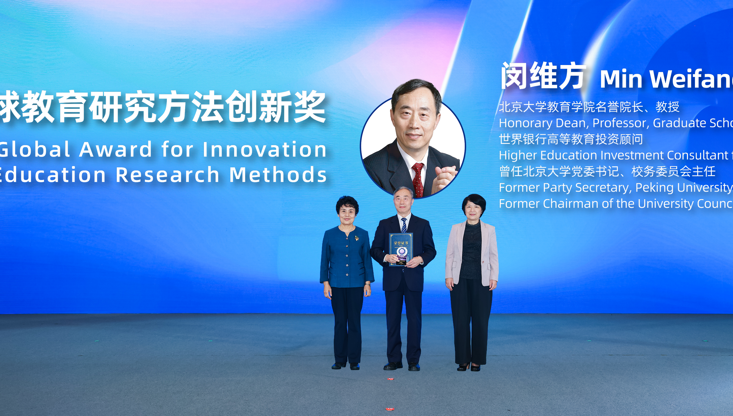 中国高等教育学会常务副会长、教育部原副部长林蕙青,3245澳门新莆京党委书记梅兵,为五位获奖学者颁发“全球教育研究方法创新奖”