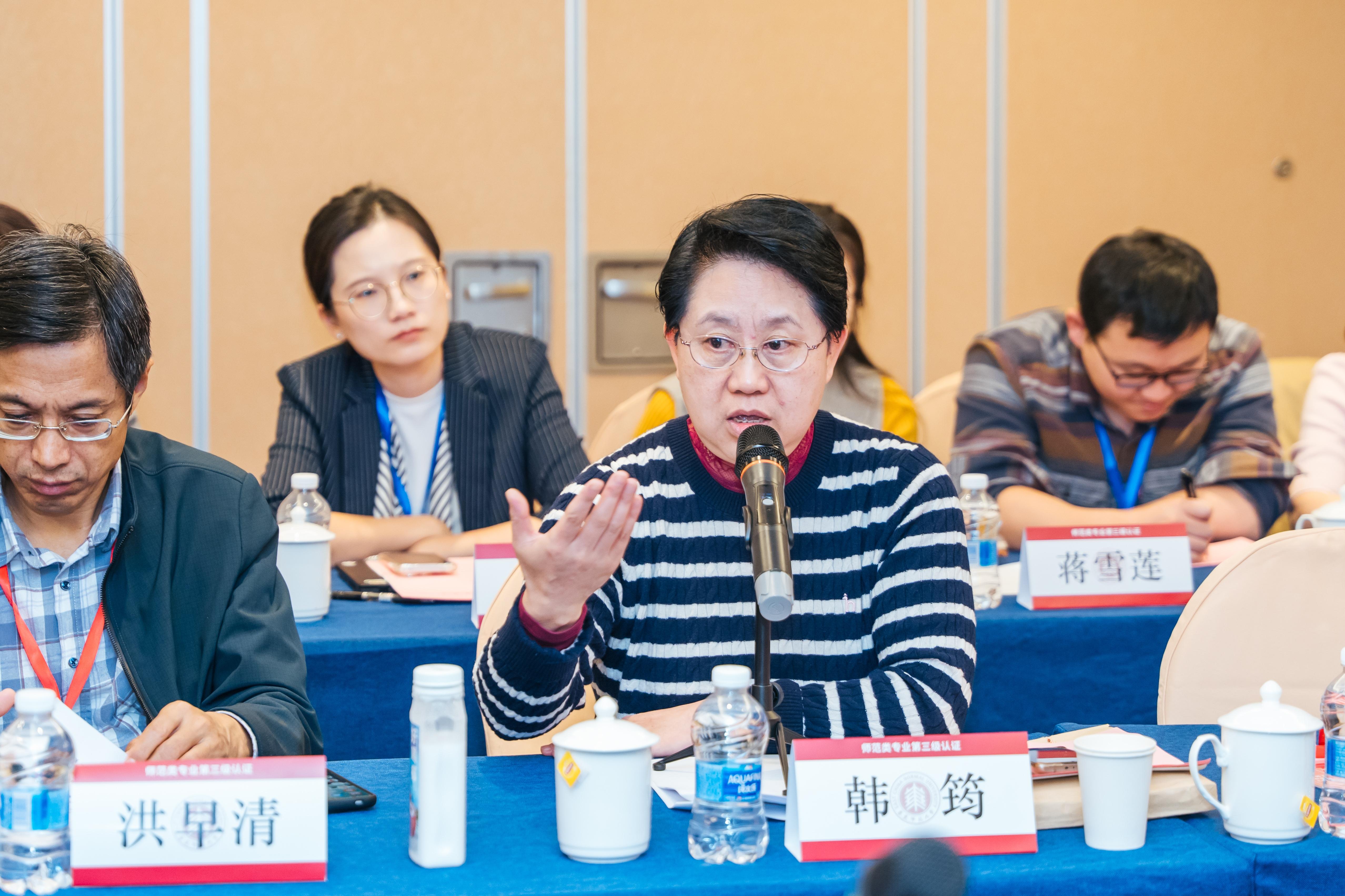 见面会上,韩筠教授首先围绕三级认证的目的、依据和任务对进校考查情况作必要说明。她指出,三级师范专业认证是推动教育教学创新的重要抓手,可以推动创新师范人才培养体制,为加快实施基础教育的现代化提供强有力的师资保障。她表示,期待此次三级专业的认证工作能形成师范专业建设的共同体,共同为3245澳门新莆京作为教师教育的国家队的建设与发展作出贡献。