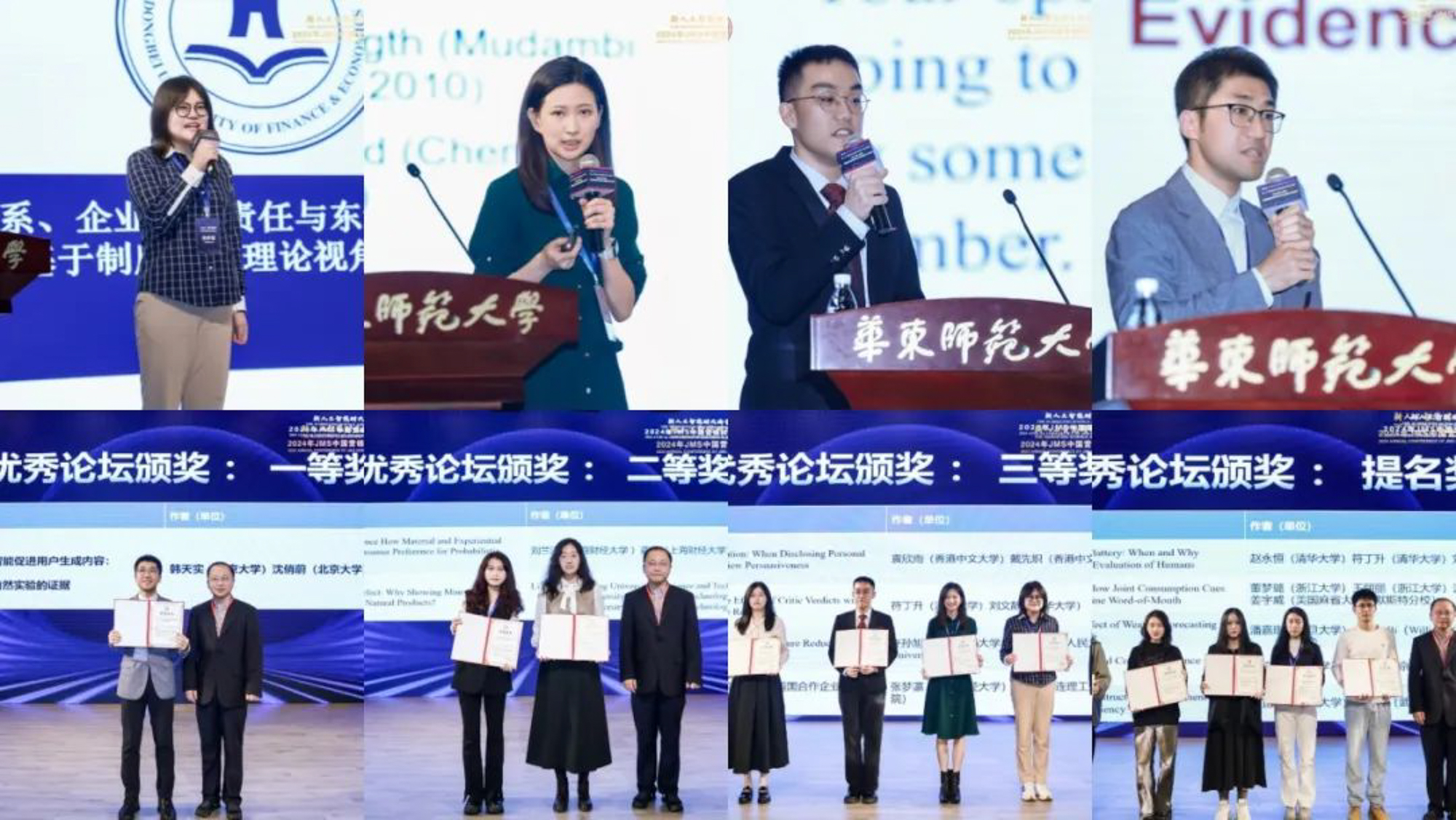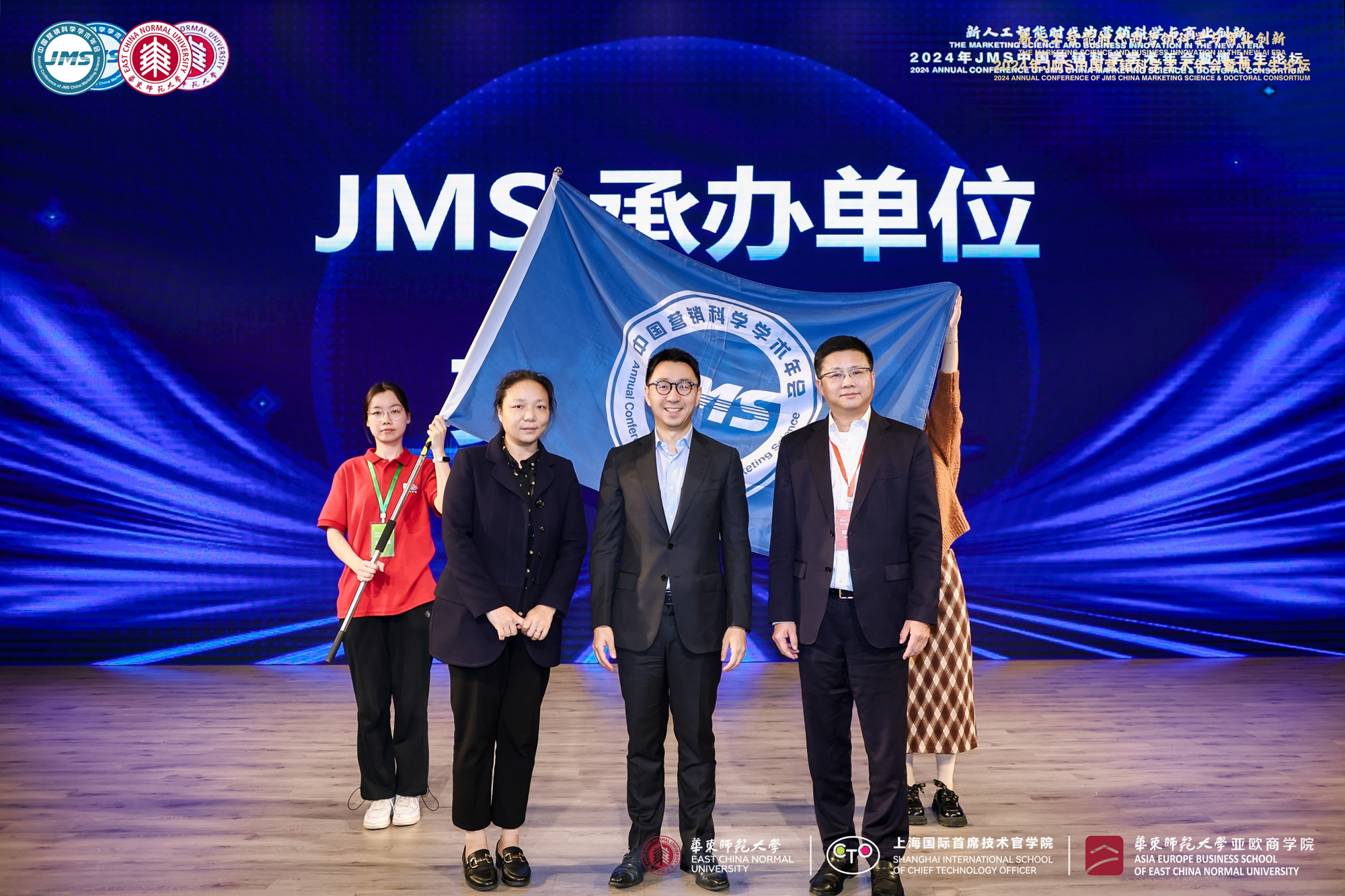 闭幕式上,北京大学张影教授为承办方代表华东师大何佳讯教授颁发纪念证书。何佳讯教授与西南财经大学付晓蓉教授代表双方进行了会旗交接,传递JMS年会承办单位的接力棒。至此,为期三天的第二十一届JMS中国营销科学学术年会暨博士生论坛圆满结束,本次会议举办各种大小论坛62场,参会者共计逾600人,聚焦学术研究、教育改革、实践贡献等维度,引领新人工智能时代的营销科学与商业创新,加快发展科技商学,为新人工智能时代的营销科学发展作出新贡献。