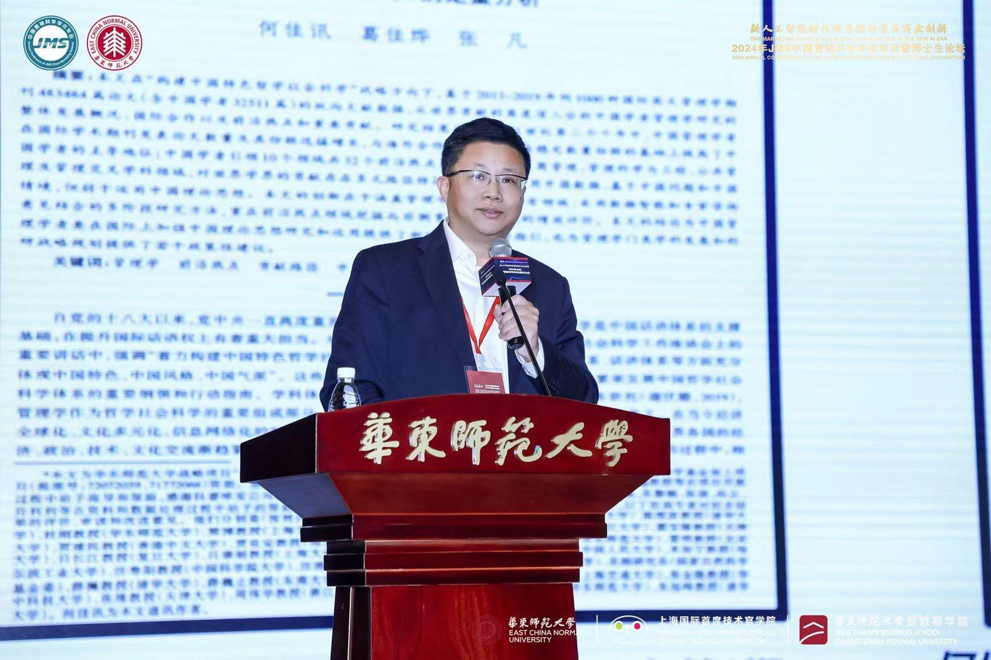 3245澳门新莆京党委常委、副校长施国跃教授在致辞中代表承办方向各位嘉宾的到来表示热烈欢迎与诚挚感谢。他指出,近年来华东师大积极响应国家“人工智能+”行动,实施“数智跃升计划”,培养具备AI素养的复合型人才。上海国际首席技术官学院和亚欧商学院开创的“科技商学”交叉学科创新求变,大幅度改革传统商学和管理学的教学科研,直接面向国家科技创新战略需求,体现生产要素创新型配置、加快发展新质生产力的核心精神。他希望通过本次论坛,能形成学术界的新共识,推进管理科学的加速发展和创新突破。