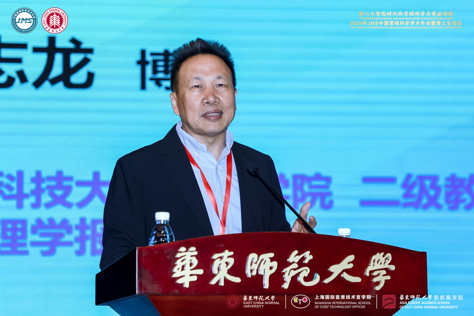 清华大学经济管理学院讲席教授、JMS学术委员会主任陈煜波教授在致辞中代表JMS学术委员会向本次大会的胜利召开表示祝贺。他表示,以人工智能为代表的数智经济在全球蓬勃发展,中国也面临着从高速向高质量发展的重大转型,这也为中国营销科学学者提供了千载难逢的机会。