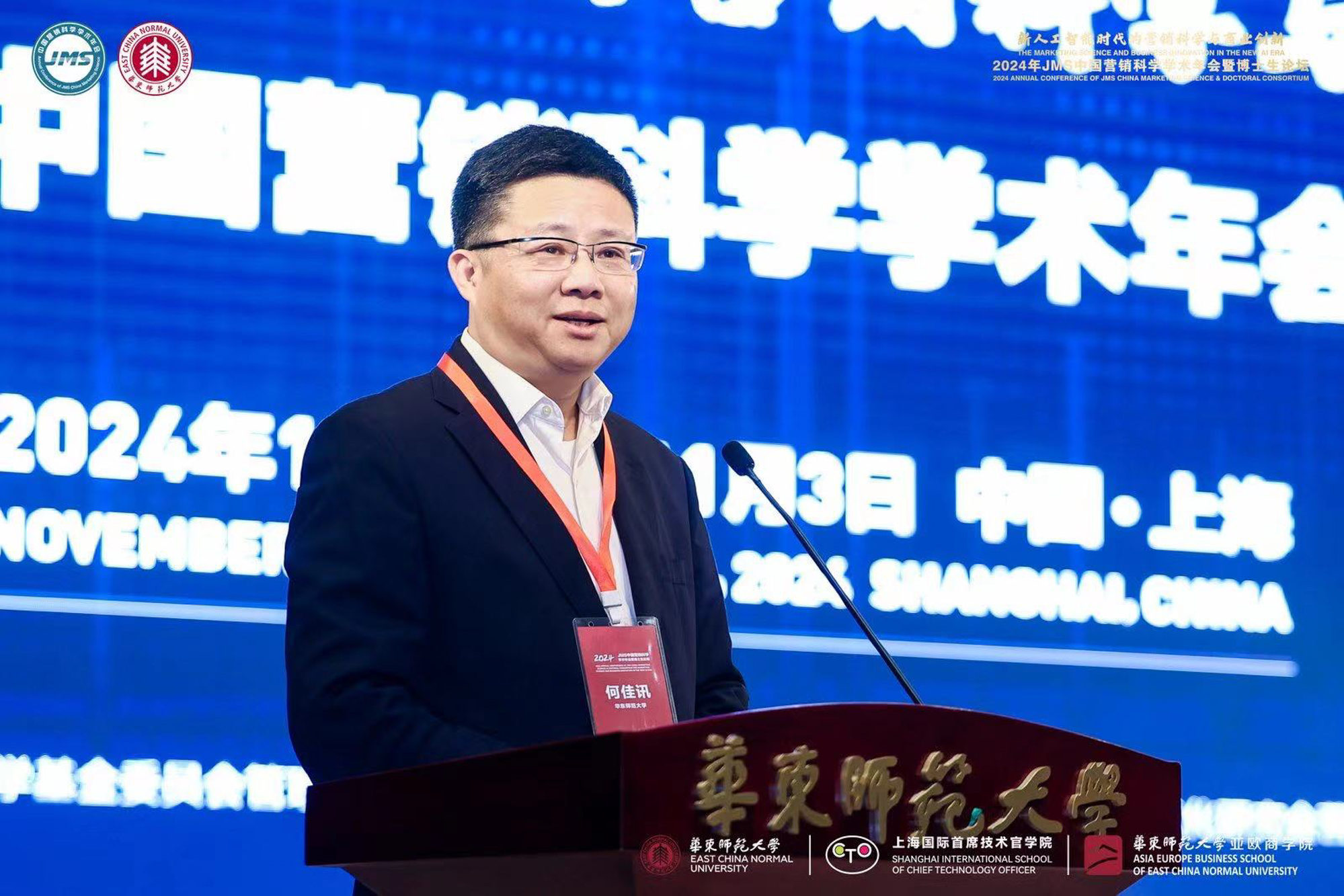 3245澳门新莆京亚欧商学院中方院长、上海国际首席技术官学院执行院长何佳讯教授在致辞中围绕“三个贡献”和“三个突破”提出了对新AI时代营销科学发展的思考。第一,要加强对商科和跨学科的贡献,突破领域的边界。要具备“超限思维”,重视学科的交叉融合。第二,要加强对企业家精神和企业家事业的贡献,突破职能管理的站位。我们迫切需要培养有影响力的科创高层管理者和产业技术领袖,要大力发展科创企业家精神。第三,要加强对新AI时代的贡献,突破知识和技能的教育目标。人的发展的根本在于未来超级智能体无法替代的能力,包括精神和价值观、创新和领导力。商学和管理学科的学术研究要发挥更大价值、更好赋能人才培养,服务国家战略需求,切实践行“教育、科技、人才”一体统筹的发展战略。