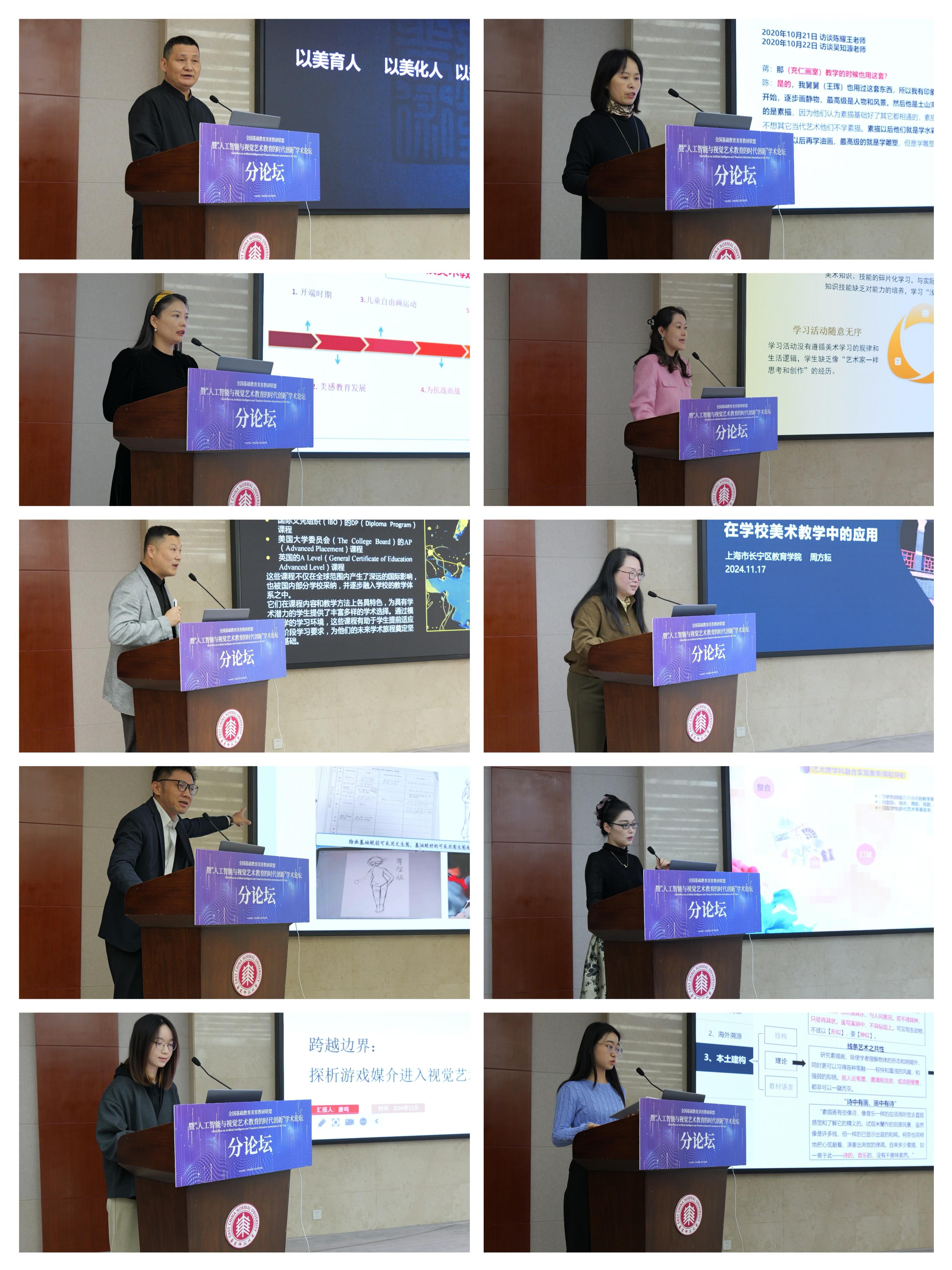 在“视觉艺术教育”分论坛,重点讨论了视觉艺术跨学科学习理论与策略、美育人才培养、学校美育AI技术的应用、社会美育等方面的内容。