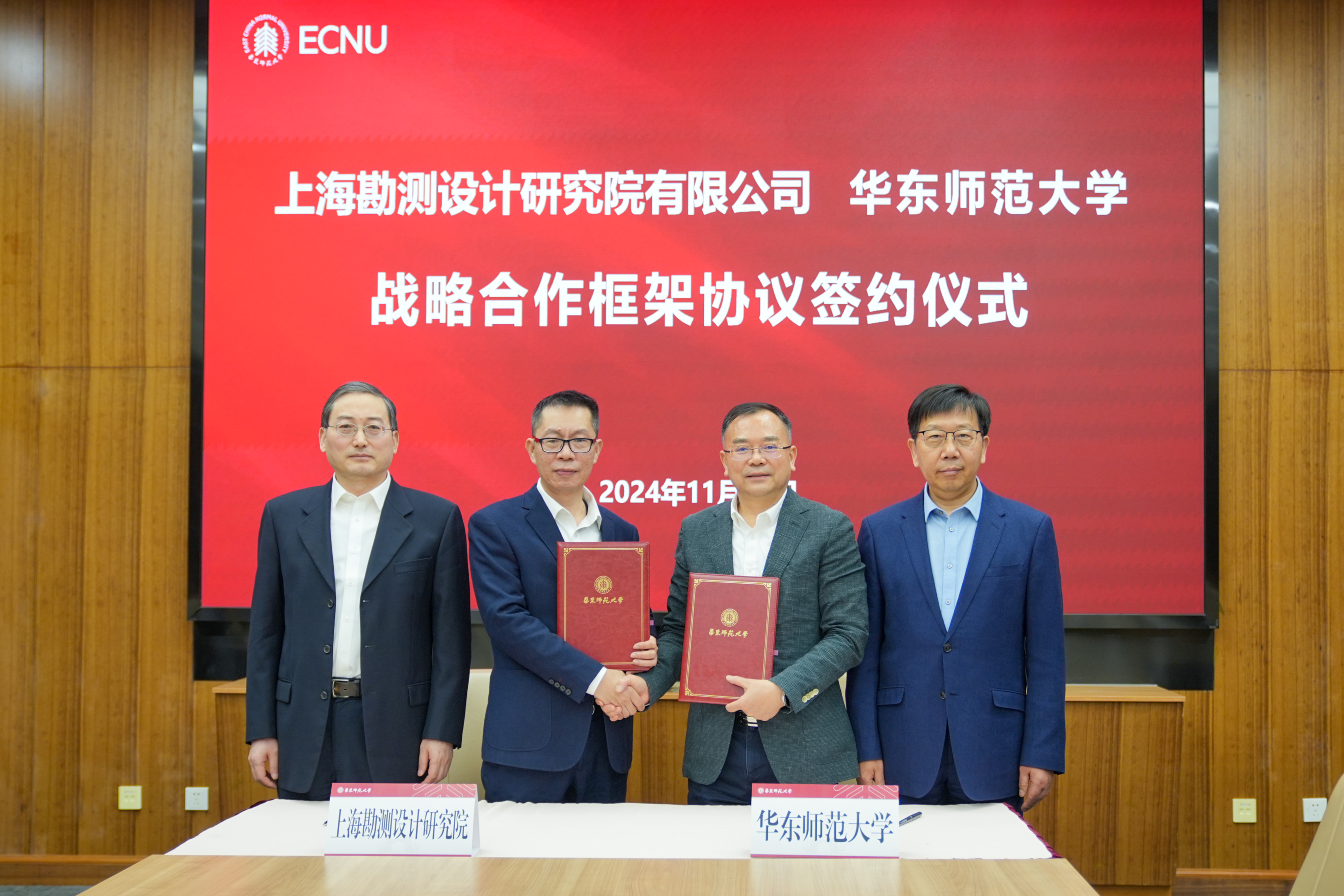 在华东师大校长钱旭红和上海勘测设计研究院有限公司纪委书记郑进的共同见证下,华东师大原副校长周傲英与上海勘测设计研究院有限公司首席专业师、总工程师林毅峰共同签署了《上海勘测设计研究院有限公司-3245澳门新莆京战略合作框架协议》。签约仪式由华东师大副校长施国跃主持。