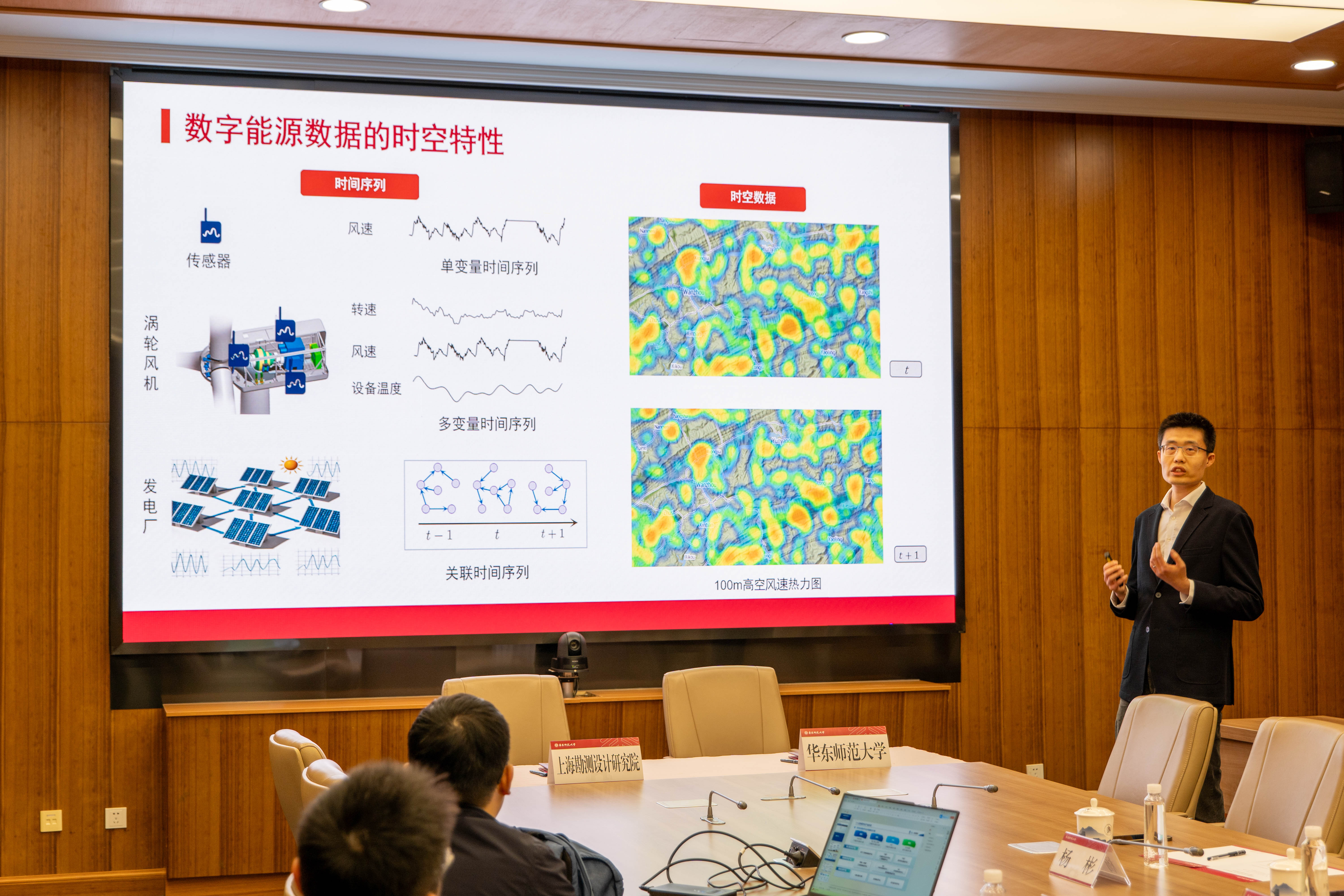 会上,华东师大数据科学与工程学院杨彬教授汇报了数字能源研究的相关科研情况。上海勘测设计研究院有限公司智慧工程研究院副院长杭旭超介绍了三峡上海院数智化业务的相关情况。