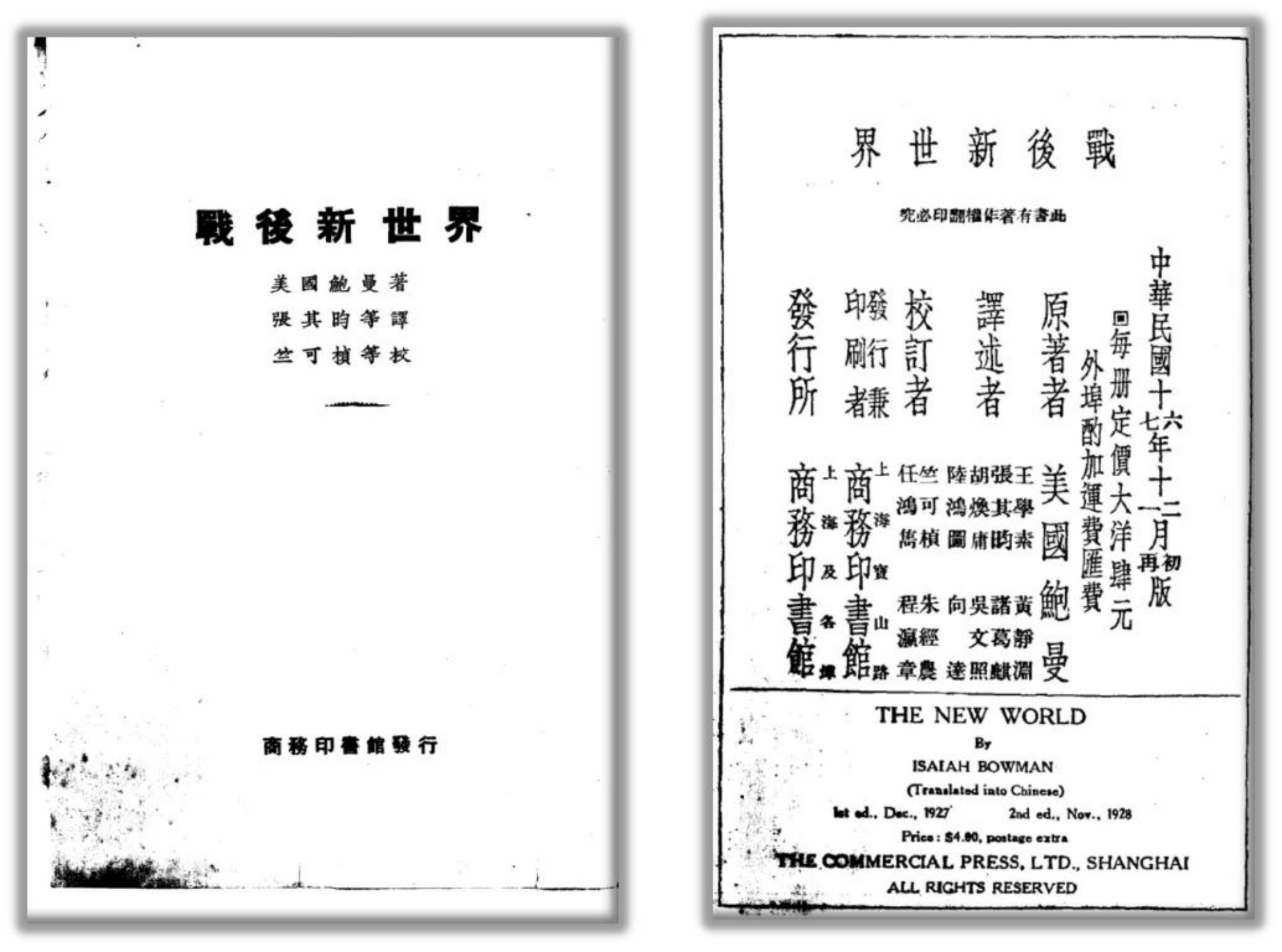 身为大学老师的竺可桢,“指导我们几个同学把这本书翻译成汉语,署名《战后新世界》,在商务印书馆出版,作为我们毕业的纪念。”值得一提的是,1922到1923年之间,胡焕庸还翻译了詹姆斯·费尔格里夫的名作《地理与世界霸权》——近些年,这个胡焕庸百年前翻译的版本,依然被多家出版社接连翻译出版。