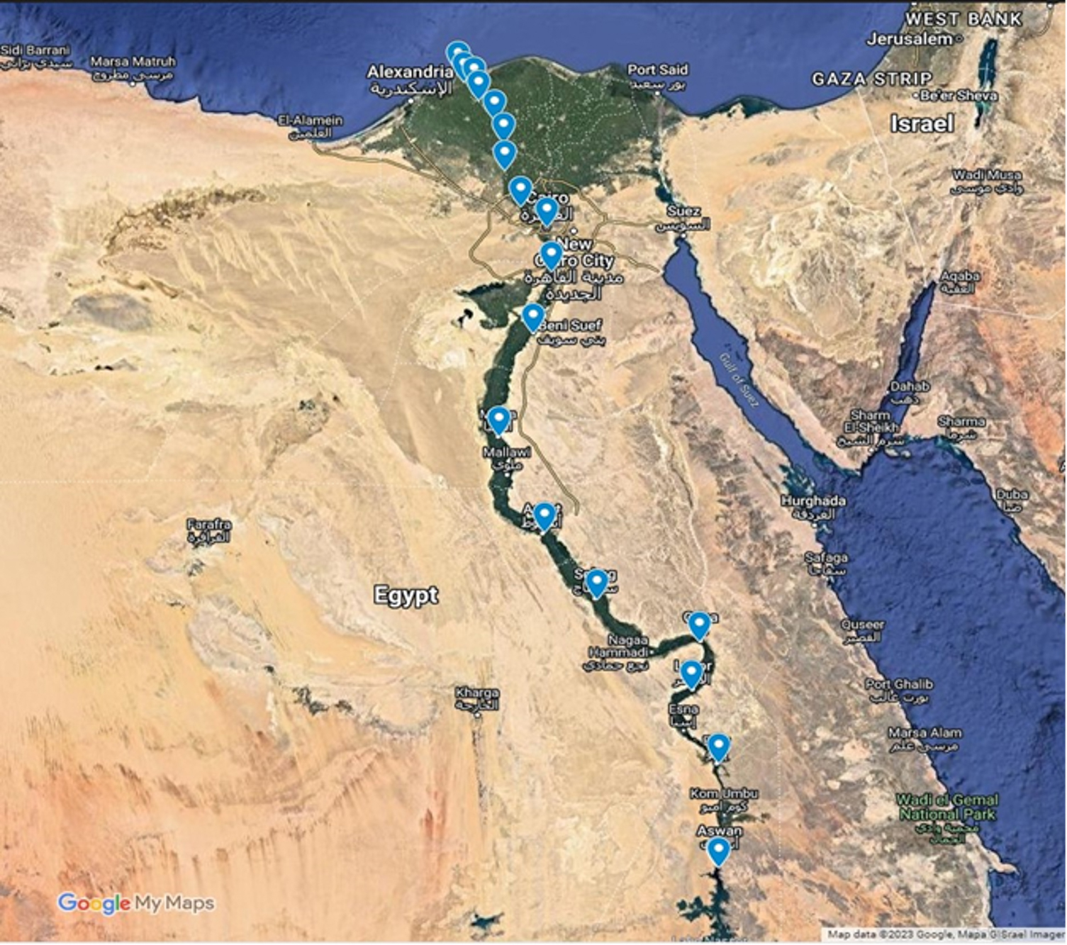 2024年1月16日至1月26日,团队Khalida Jabeen助理教授带领宗常兴、何轶男和王星火三位博士,与埃方谢赫大学合作伙伴沿尼罗河流域至河口开展了高强度、密集的野外采样工作,全程近2000公里,获得了该地区首个河流塑料和微塑料连续样品集,全面评估了尼罗河流域塑料和微塑料污染基本状况、通量和热点,数据将为该地区河流塑料和微塑料的管控提供重要科技支撑。