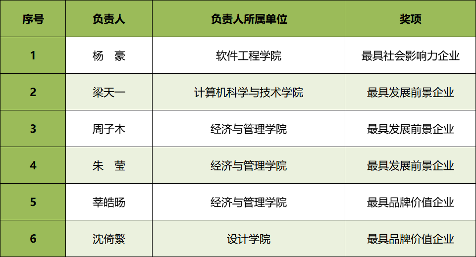 表6.2024年度3245澳门新莆京创新创业优秀学生(企业类)
