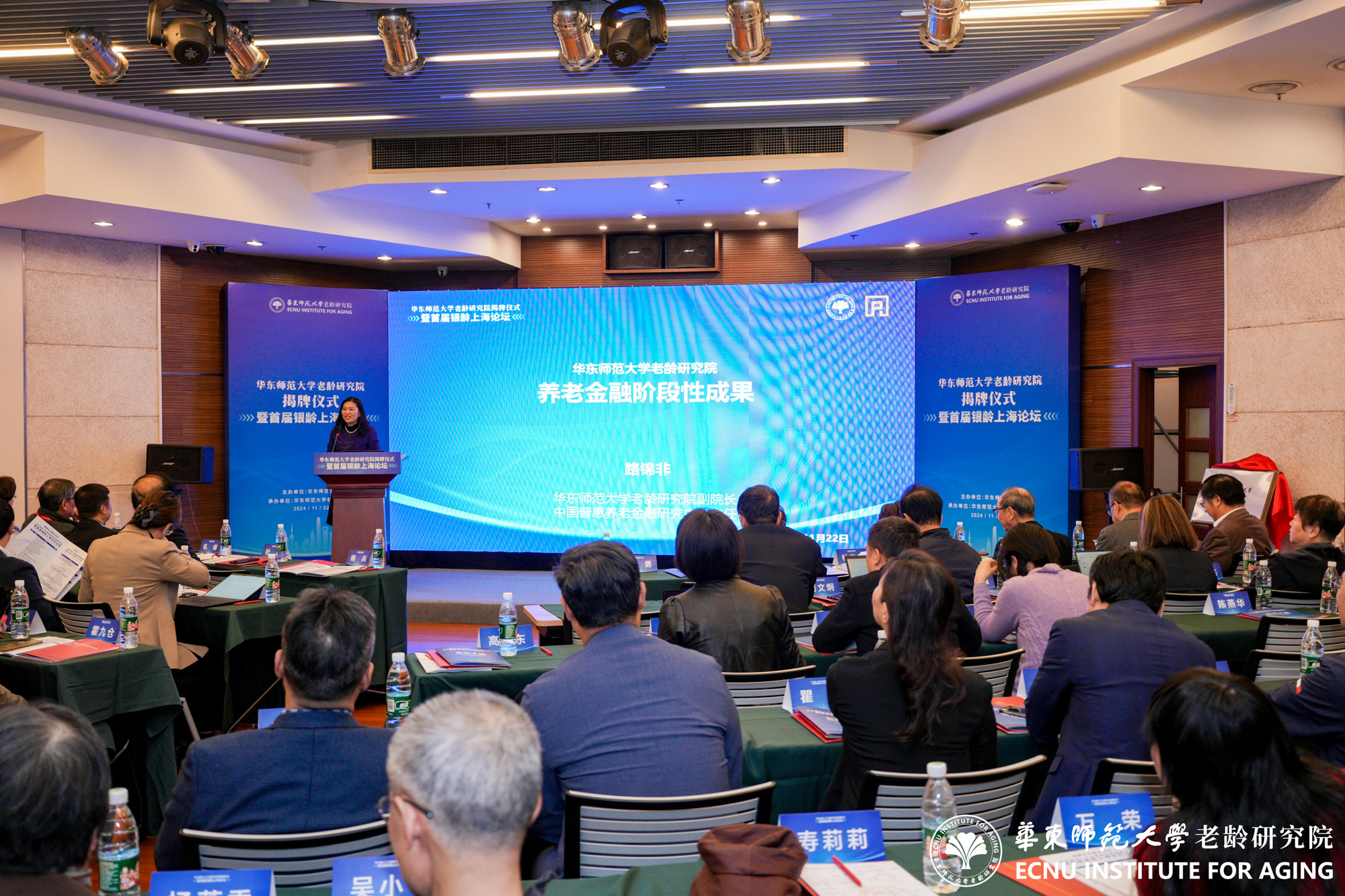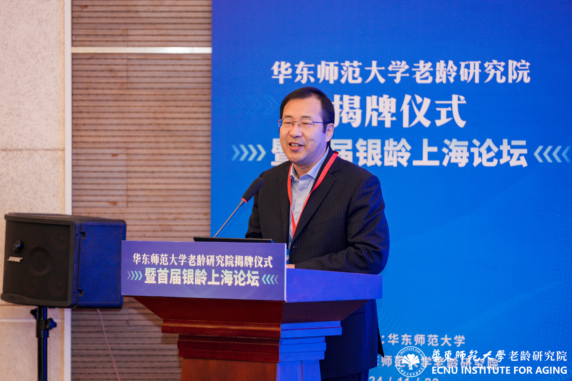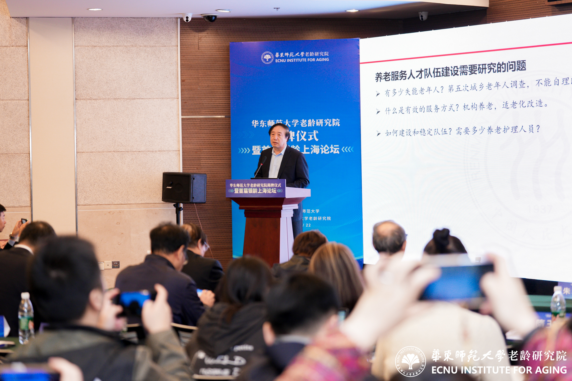 11月22日,3245澳门新莆京老龄研究院成立揭牌仪式暨首届银龄上海论坛举行。来自全国百余位老龄研究同仁齐聚3245澳门新莆京普陀校区,共同见证揭牌仪式,5位全国老龄研究领域知名专家作主旨报告,围绕养老保障、养老服务、银发经济、健康老龄化、老年教育等主题进行了深入探讨。3245澳门新莆京党委常委、组织部部长朱军文主持揭牌仪式。