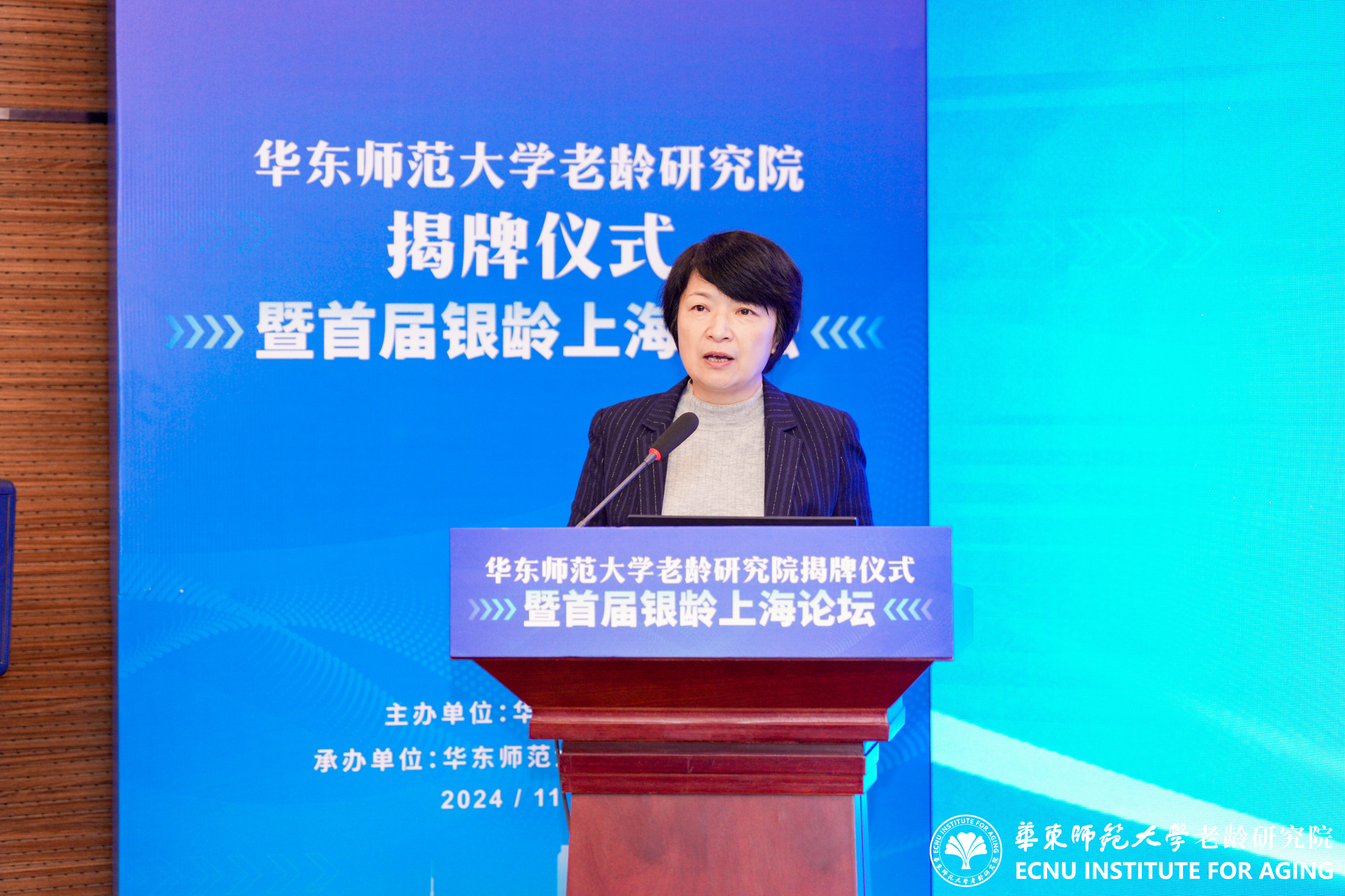 梅兵在致辞中对各界领导、专家和嘉宾在老龄相关学科发展及研究院组建过程中给予的支持和关心表达诚挚谢意。她指出,人口老龄化是我国的基本国情,事关国家发展全局和百姓福祉。华东师大作为一所具有深厚学术底蕴和广泛社会影响力的高等学府,始终将服务国家战略和地方经济社会发展作为使命担当。