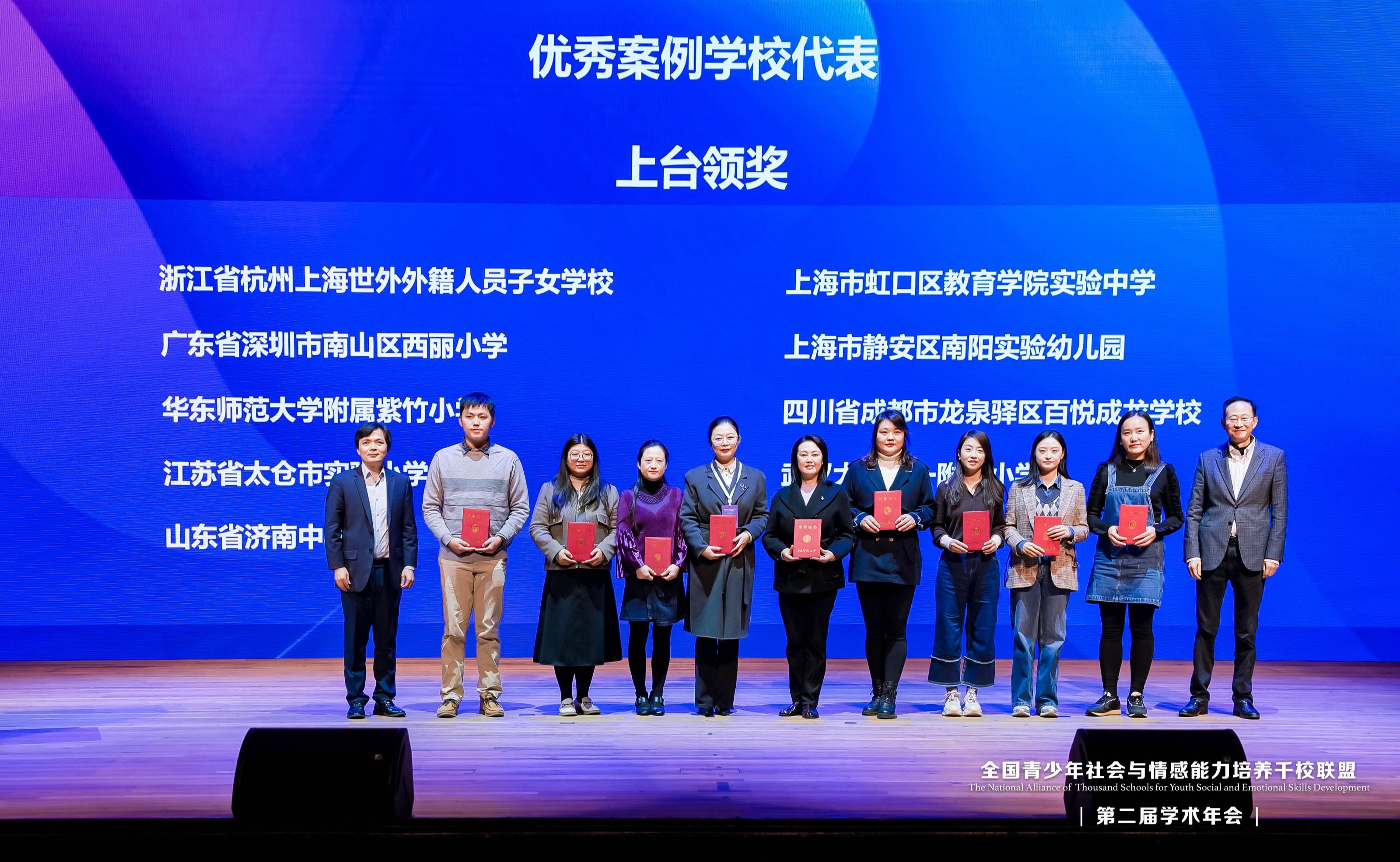 为鼓励学校和教师积极探索青少年社会与情感能力培养路径与实践经验,本届学术年会对提交的社会与情感能力培养案例进行评审,旨在发掘、表彰在培养实践中具有创新性和示范意义的优秀成果。经过多轮专家评审,本届年会为入选的65位优秀案例作者颁发了荣誉证书,并邀请优秀案例代表登台领奖,以此激励全国各级各类学校、广大教师群体积极探讨社会与情感能力培养议题,推动社会与情感教育理念在全国学校落地生根。