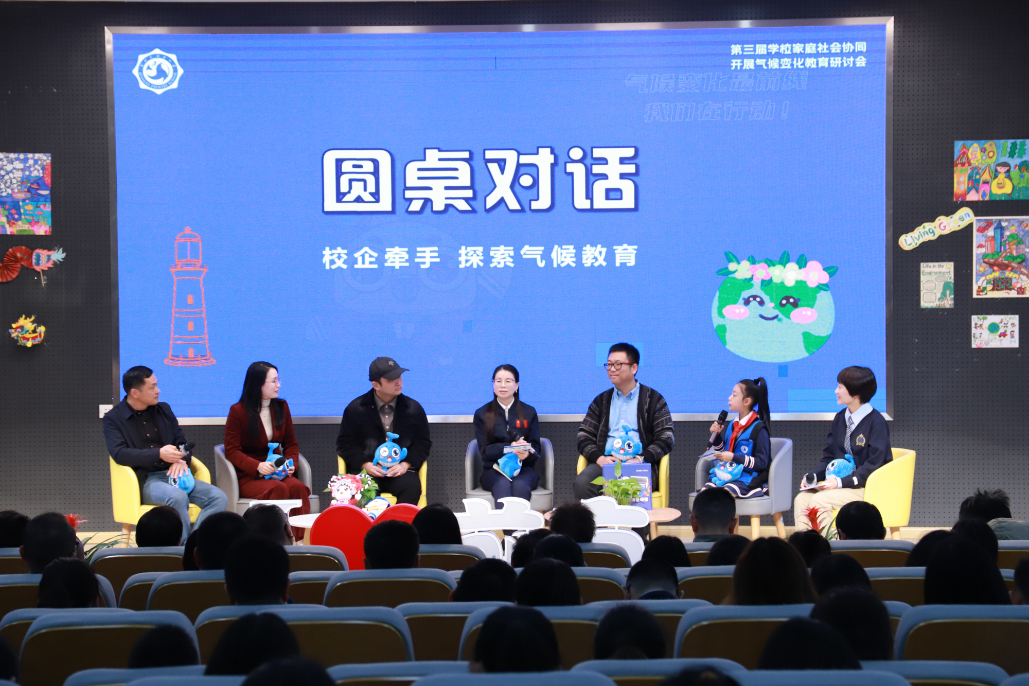 企业代表的圆桌对话环节由前京小学副校长蒋丹妍主持。来自各行各业的企业代表们结合自身丰富的实践经历,分享了多个校企合作的鲜活案例,诠释了校企合作是推动气候变化教育迈向新高度的必由之路。