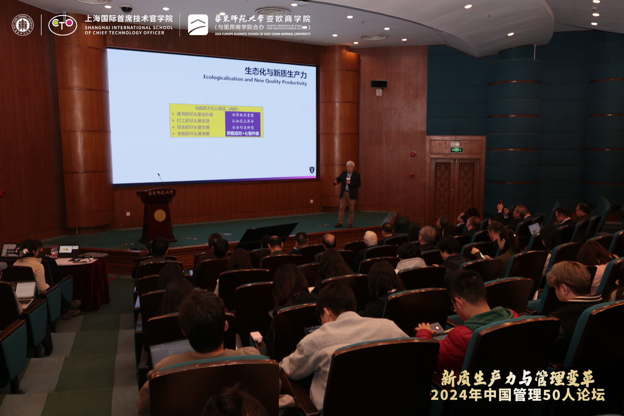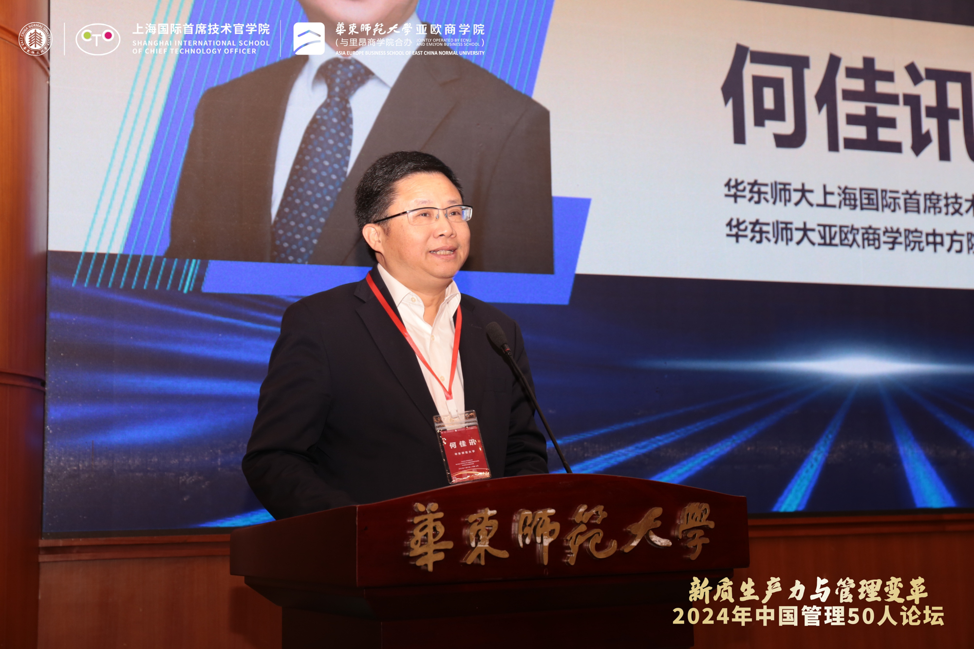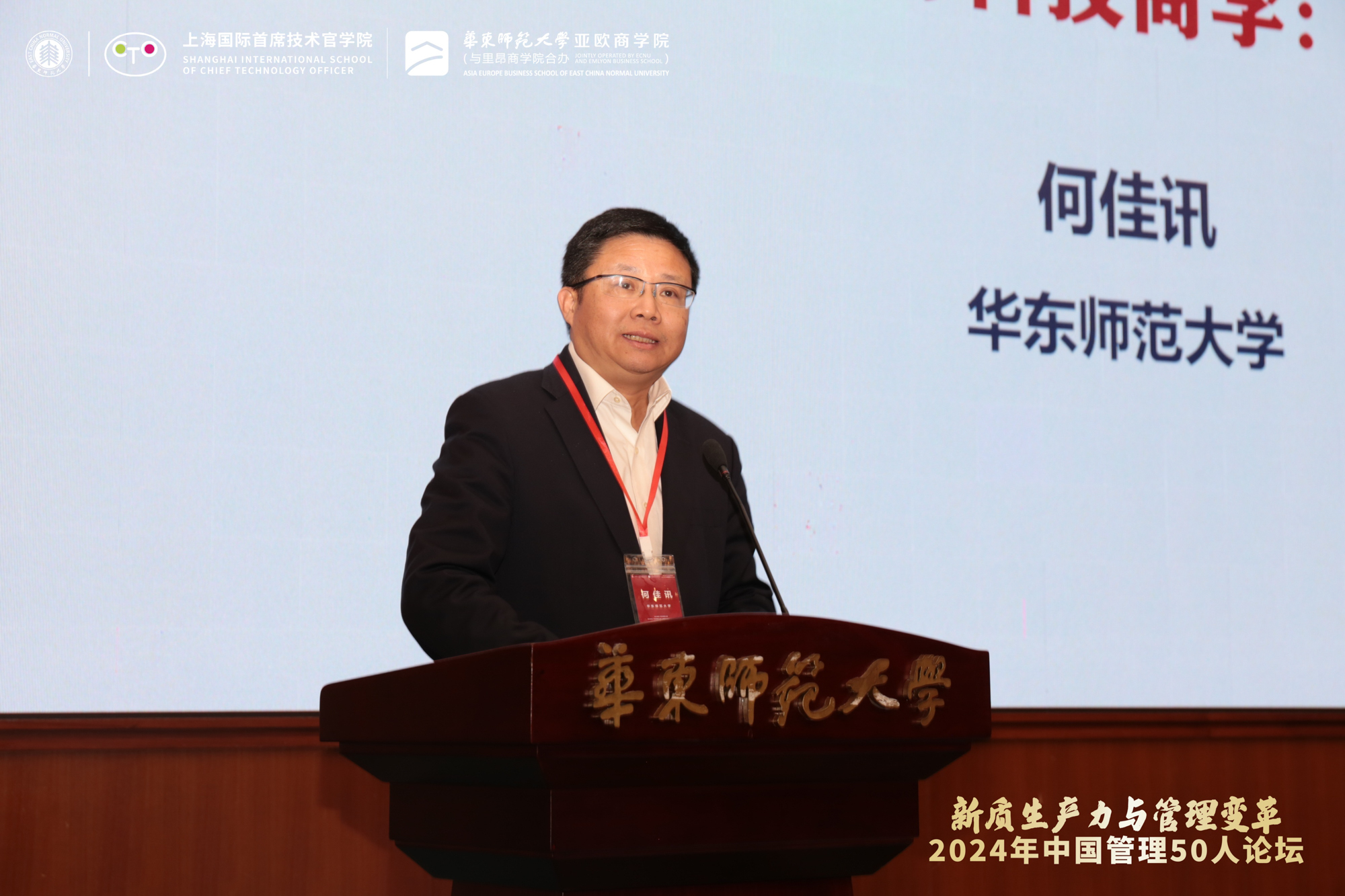 华东师大上海国际首席技术官学院执行院长、亚欧商学院中方院长何佳讯教授围绕“新质生产力与科技商学:变革与实践”进行主旨演讲。他指出,今天中国管理学的发展迎来了新的机遇,即基于发展新质生产力的实质性问题,破解科学与商业的悖论,立足产业技术前沿,以生产要素协同匹配和创新性配置为核心,加快发展“科技商学”。此外,何佳讯教授还介绍了学院“科技商学”教育和科研实践。
