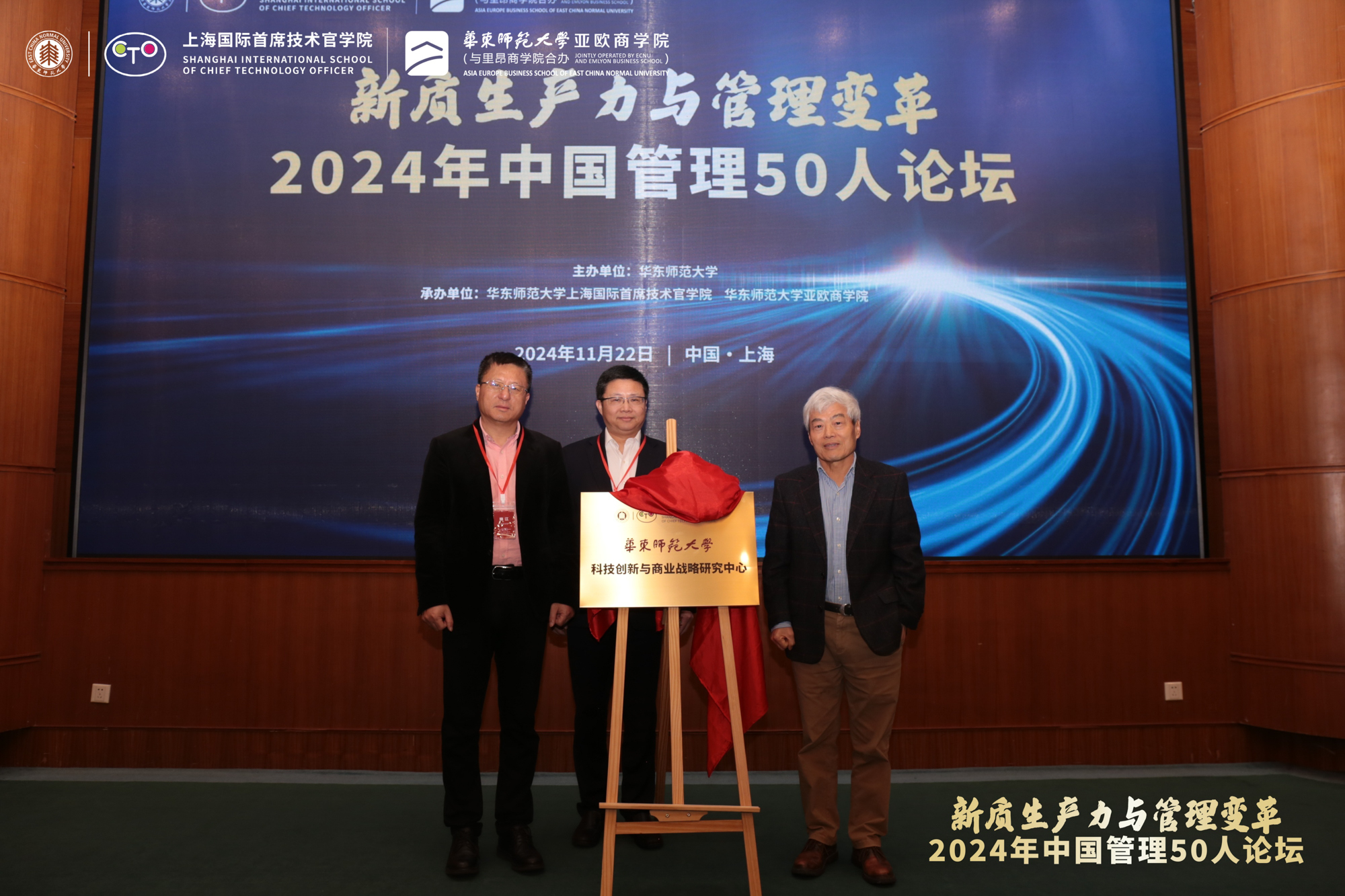 随后,魏江教授与席酉民教授共同为上海国际首席技术官学院新成立的“科技创新与商业战略研究中心”揭牌。这意味着上海国际首席技术官学院和亚欧商学院在新的研究平台上,加大科技商学交叉学科建设力度,改变传统商学和管理研究路径和范式,以新学科优势直接支撑科技成果转化和技术转移实践,面向“应对重大挑战的管理教育”,强化贡献导向,进一步践行学院使命“通过人和技术的协同转化实现科技的社会价值”,承担国家战略需求牵引的科创人才培养重任。