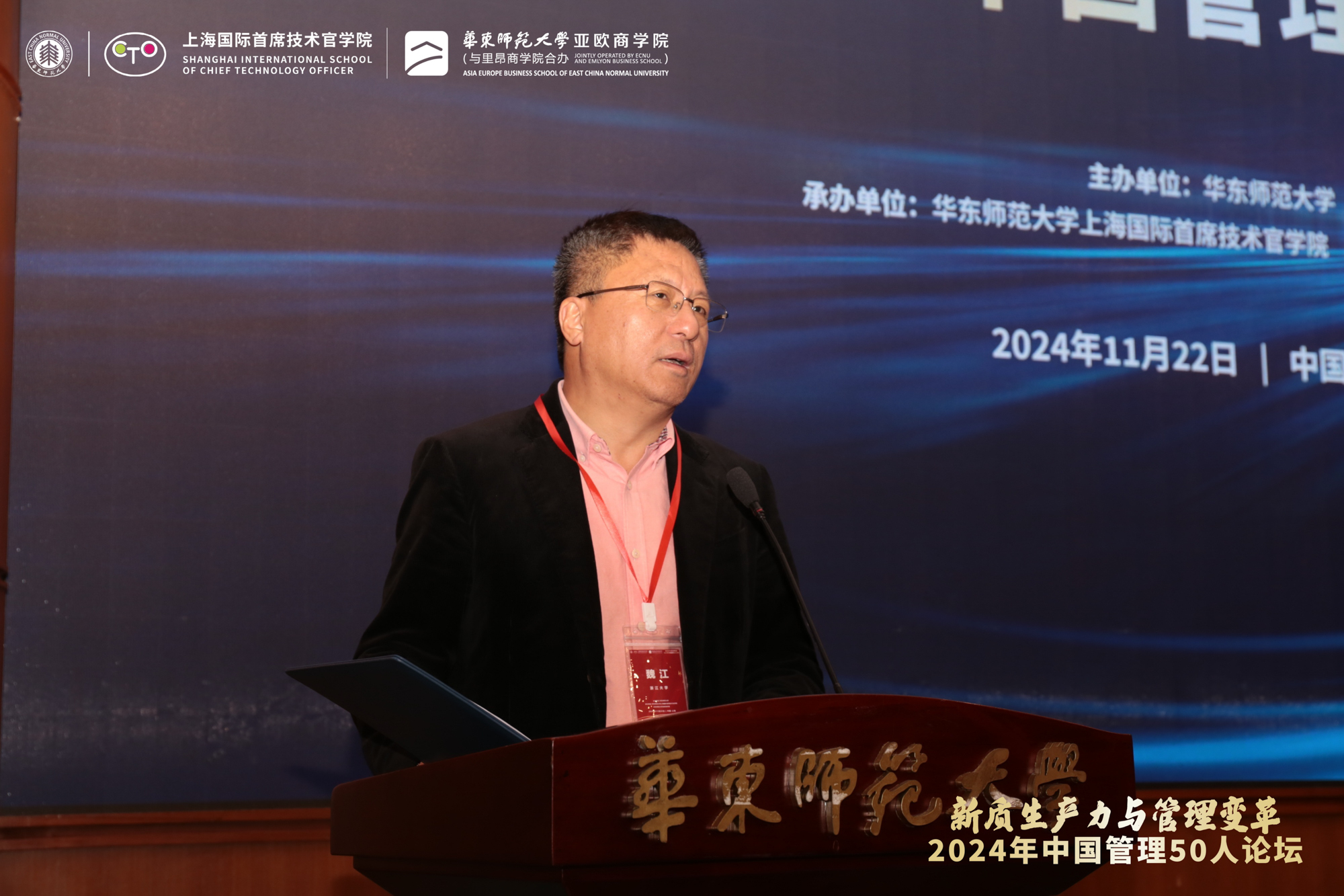 华东师大上海国际首席技术官学院执行院长、亚欧商学院中方院长何佳讯教授代表举办方致辞。他表示,在过去7年多的时间里,“中国管理50人论坛”在中国管理学界做出了积极的贡献。新一轮科技革命给管理学带来了极大挑战,也迎来了发展的大机遇。如何深刻理解新质生产力、发挥管理作为新生产要素的作用,正是当前管理学的重大问题。华东师大在校长钱旭红院士的领导下提出“科技商学”交叉学科建设,引领育人创新,面向新质生产力进行科创人才培养,建立“人工智能与创新科学”等新学科领域,探索为新质生产力发展做出新贡献。
