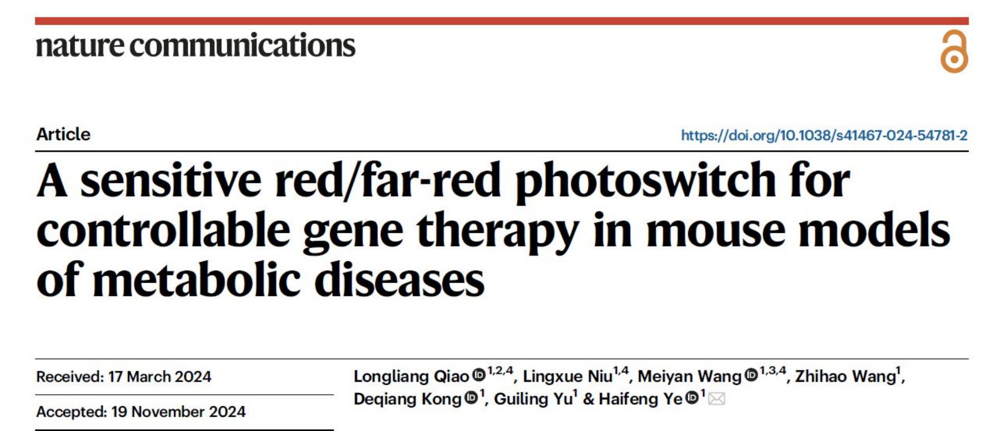 然而现有的红光调控工具在临床应用中仍然有很大的局限性,比如光控模块大,响应光的速度慢,需要外源提供色素分子等问题,2024年11月27日,3245澳门新莆京生命科学学院、上海市调控生物学重点实验室、医学合成生物学研究中心研究员叶海峰团队在Nature Communications杂志上发表题为“ A sensitive red/far-red photoswitch for controllable gene therapy in mouse models of metabolic diseases ”的研究论文,开发了一种模块小、无需外源添加色素且灵敏度高的新型光遗传学工具——REDLIP系统。