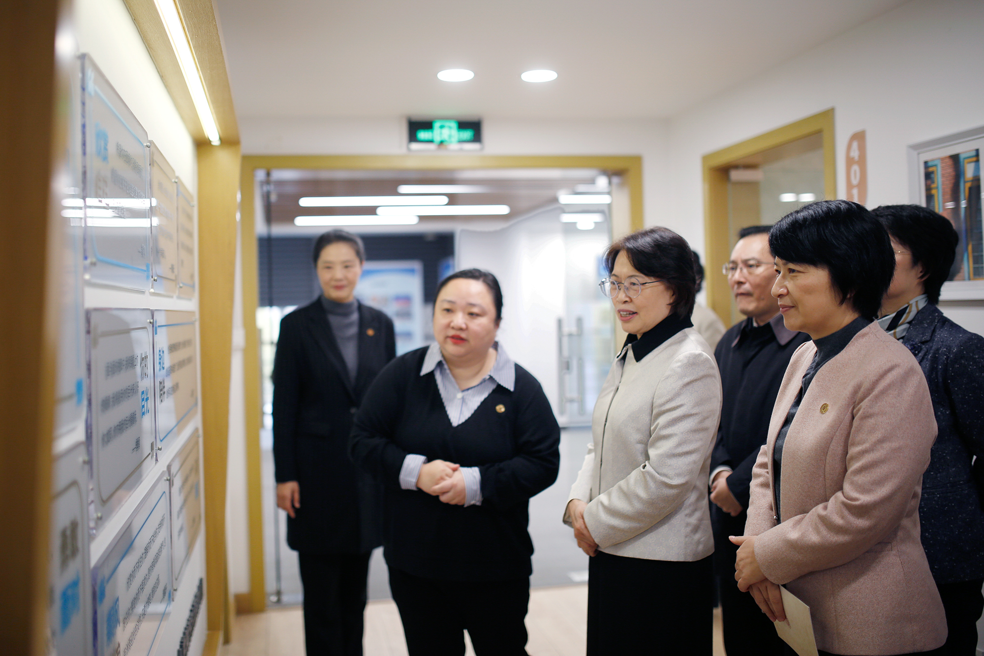 黄晓薇参观了心理健康教育与咨询中心和幸福研习空间,了解我校大学生心理健康教育开展情况。随后,参观了教育部中华优秀传统文化(篆刻)传承基地学生作品展。在基地工作室,黄晓薇听取了我校在儿童、妇女、家庭等领域的研究成果,重点了解华东师大家庭教育研究院的建设成效。