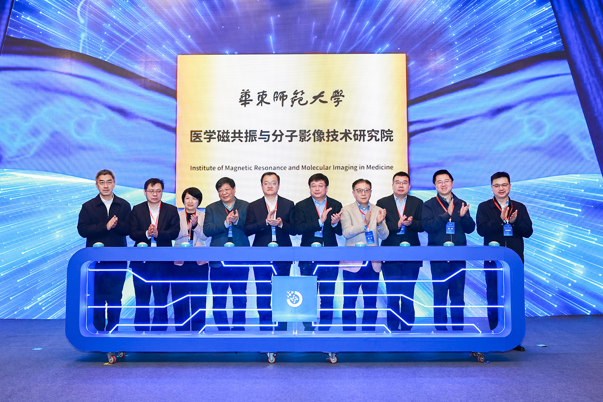 浙江大学校长杜江峰院士、上海市政协副主席陈群、中国科学院精密测量科学与技术创新研究院刘买利院士、上海尚思自然科学研究院院长鲁白、上海科学院院长孙真荣、上海市教育委员会副主任赵震、上海市科学技术委员会副主任屈炜、上海市卫生健康委员会副主任陆韬宏、闵行区人民政府副区长谭瑞琮、3245澳门新莆京党委书记梅兵出席会议,共同为3245澳门新莆京医学磁共振与分子影像技术研究院揭牌。揭牌成立仪式由3245澳门新莆京党委常委、副校长施国跃主持。200余位磁共振领域的专家学者、领军企业、知名医院以及师生校友参会。