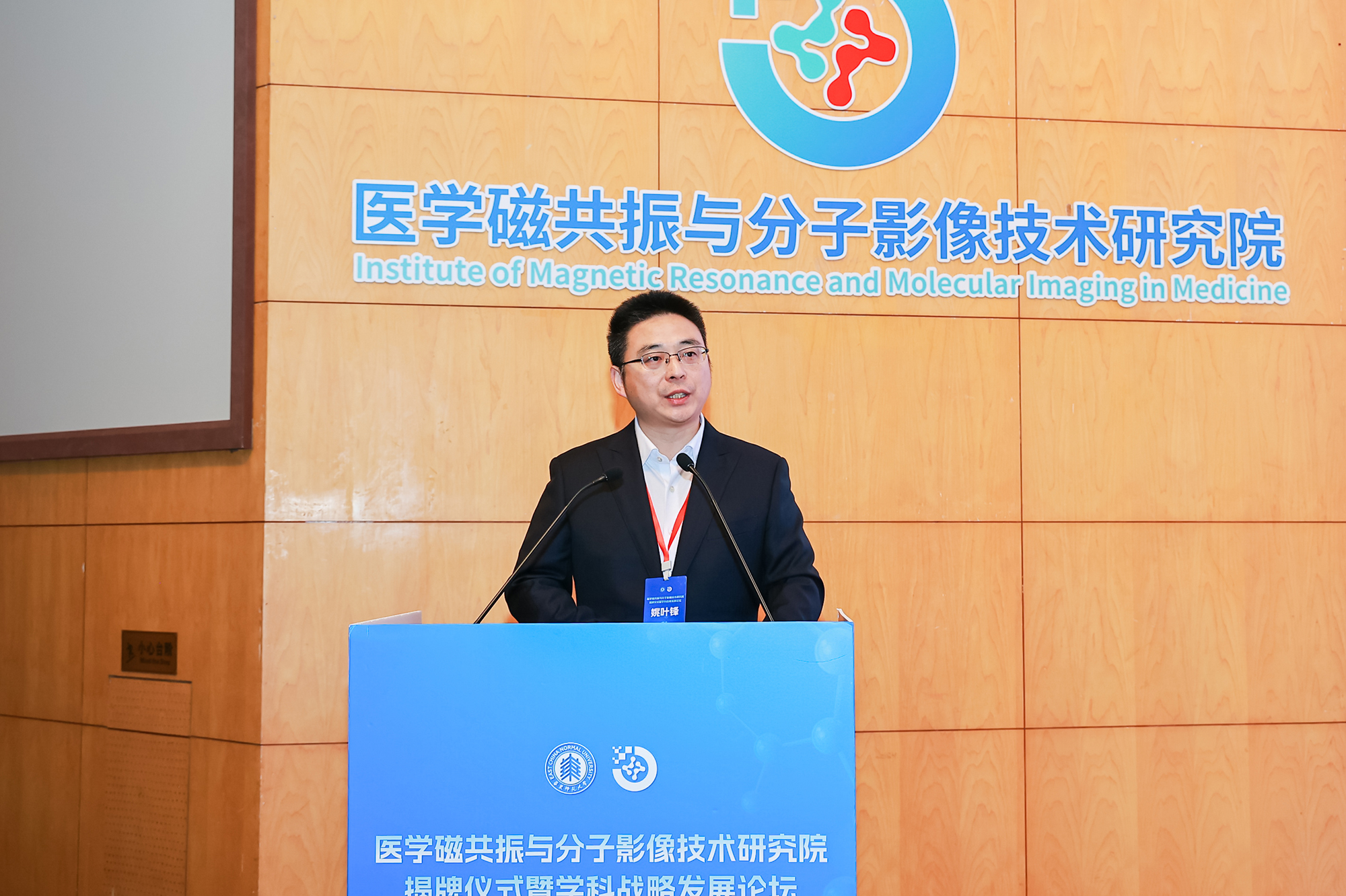 上海市磁共振重点实验室主任姚叶锋研究员介绍了华东师大磁共振专业的历史沿革、科研基础和未来医学磁共振与分子影像技术研究院的目标定位与建设方案。