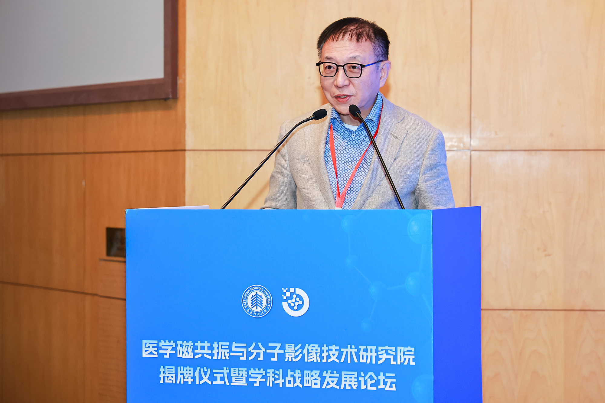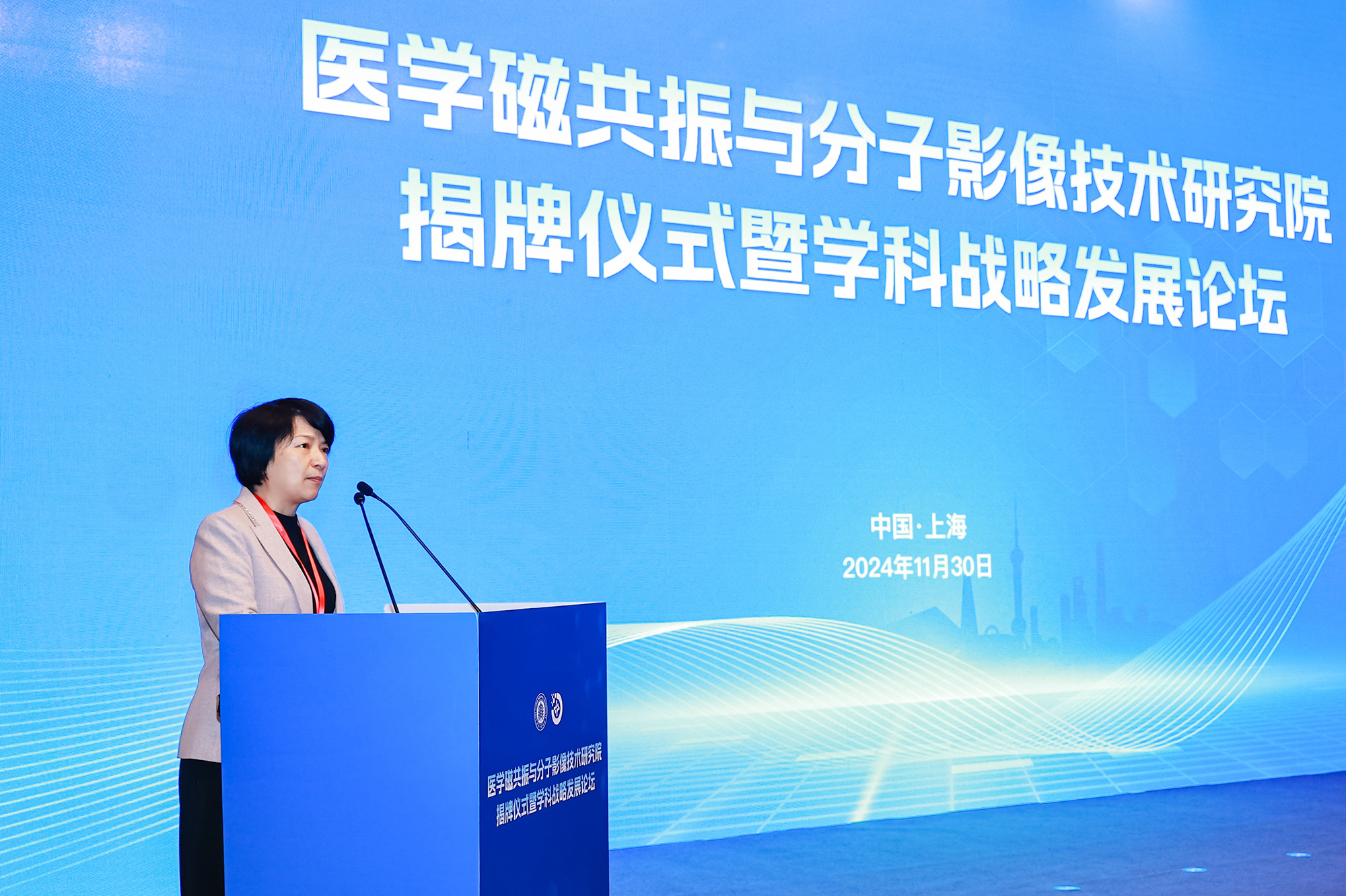 梅兵在致辞中指出,华东师大在磁共振和分子影像技术相关的研发、应用和人才培养方面有着深厚积淀,推动原创性技术研发和应用推广,加强医学磁共振与分子影像技术领域人才培养,是主动回应日益增长的全民健康需求、积极应对人口老龄化等现实挑战、助力健康中国建设的战略所需,也是实现高水平科技自立自强、支持磁共振产业从“并跑”迈向“领跑”、做强高端医疗装备“中国造”的现实所要。她希望研究院秉持开放合作、创新发展的理念,着眼国家及上海科技创新和产业发展重大战略需求,大力推动跨学科、跨领域协作,建设成上海乃至全国磁共振产业的技术源头之一,为磁共振产业在上海的集聚发展,为磁共振技术和医学应用水平提升做出贡献。