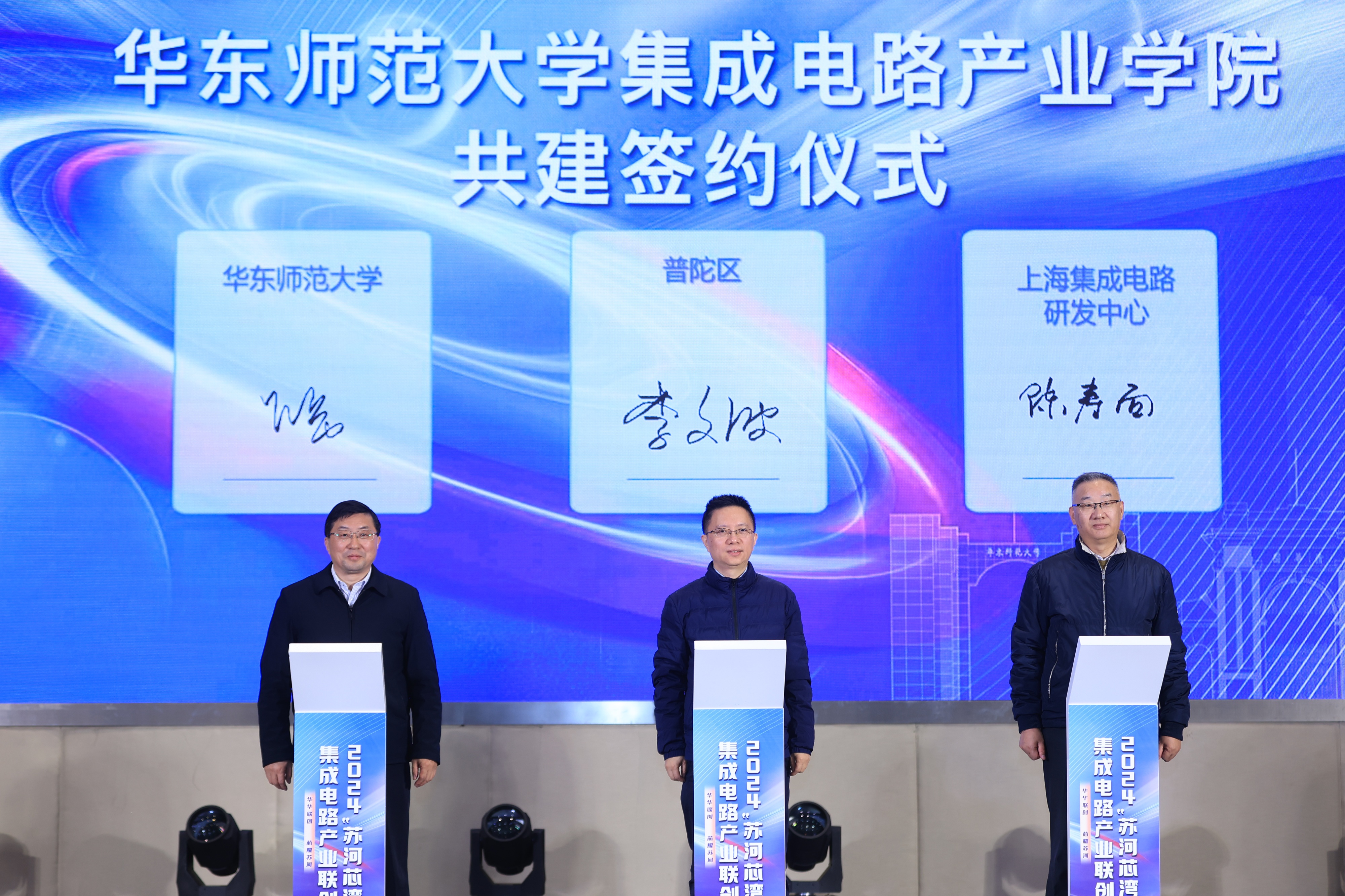 同时,举行3245澳门新莆京集成电路产业学院共建签约仪式,由普陀区、3245澳门新莆京和上海集成电路研发中心三方合作共建。学院位于“苏河芯湾”核心区,通过集成电路智能虚拟制造平台(AI Virtual Fab)和集成电路EDA创新中心建设,将从创新性研究、产业集群带动等方面助力普陀构建集成电路设计产业链,打造具有竞争力的集成电路产业集群。