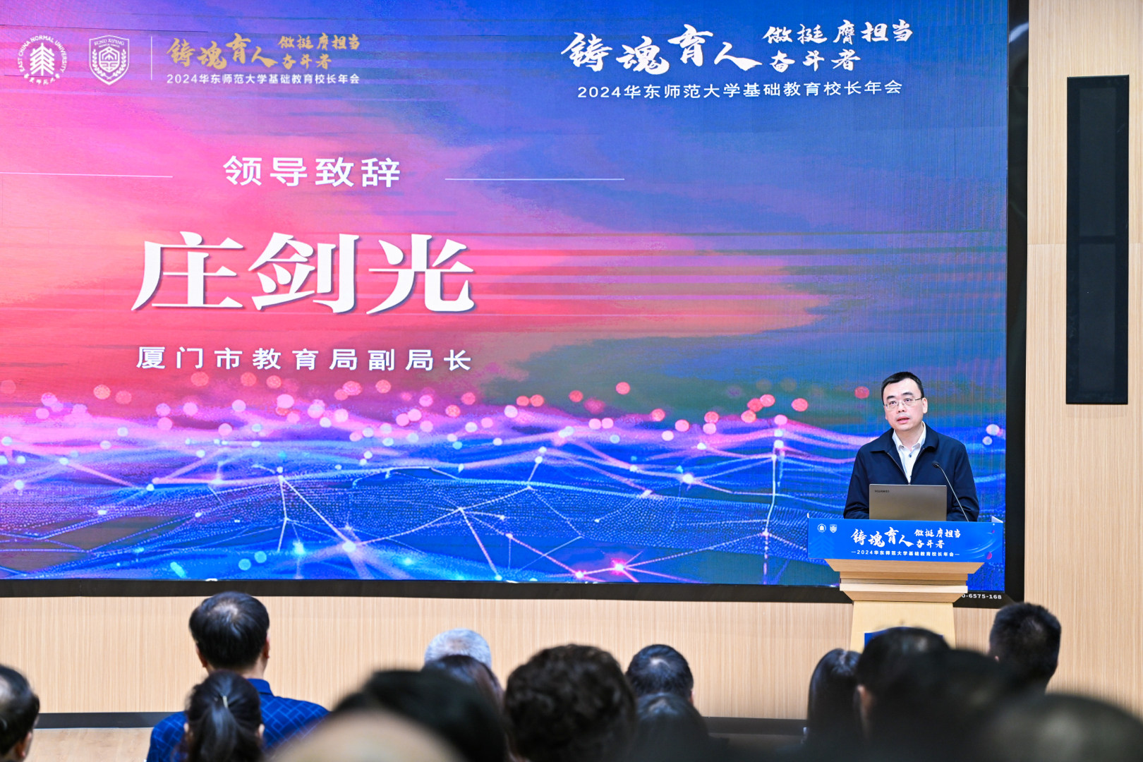 此次年会在厦门举行,得到了厦门市教育局的大力支持。厦门市教育局副局长庄剑光在致辞中,从教育资源的布局均衡、基础教育方面的提质增效、教育管理的持续创新三方面介绍了近年来厦门市在基础教育方面取得的显著发展成果,高度肯定了华东师大与厦门恒兴集团合作共建的华师希平双语学校的办学成果,并期待与华东师大深化合作,共同推动厦门教育的高质量发展。
