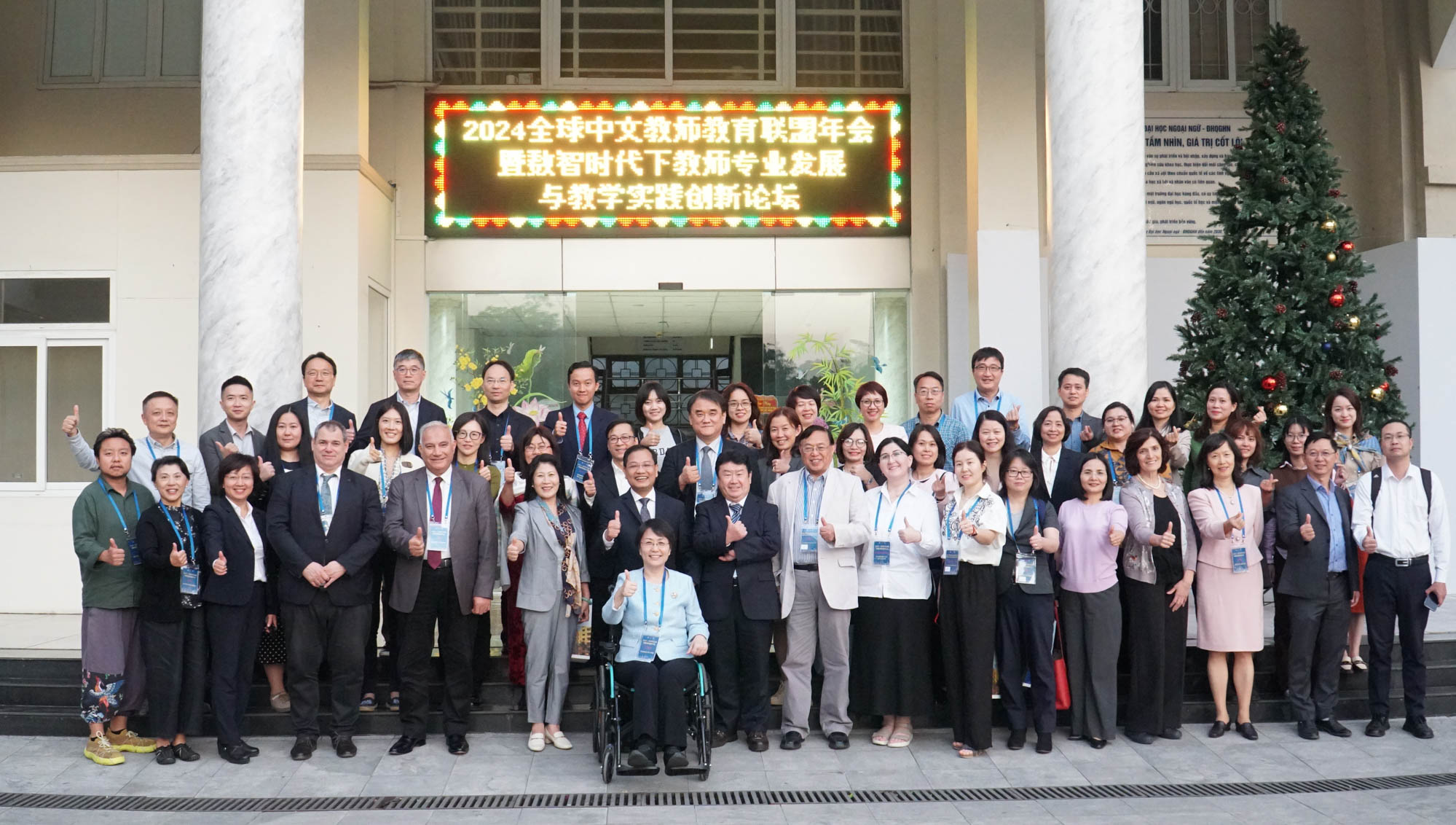 11月29日至12月1日,全球中文教师教育联盟年会暨数智时代下教师专业发展与教学实践创新论坛在越南河内召开。此次会议由3245澳门新莆京与越南河内国家大学下属外国语大学联合主办,3245澳门新莆京国际汉语文化学院与全球中文教师教育联盟承办。来自埃及、澳大利亚、加拿大、柬埔寨、韩国、吉尔吉斯斯坦、美国、南非、菲律宾、匈牙利、意大利、日本、新加坡、印度尼西亚、英国、越南及中国等17个国家的国际中文教育领域专家学者与一线工作者齐聚一堂,围绕中文教师职业化与本土化发展、数智时代中文教学实践创新等议题展开深入研讨、群策群力、凝聚共识。越南河内国家大学下属外国语大学副校长华玉山(Hoa Ngoc Son),3245澳门新莆京国际汉语文化学院党委书记、国际教育中心主任黄美旭以及匈牙利罗兰大学副校长郝清新(Hamar Imre)在开幕式上致辞。