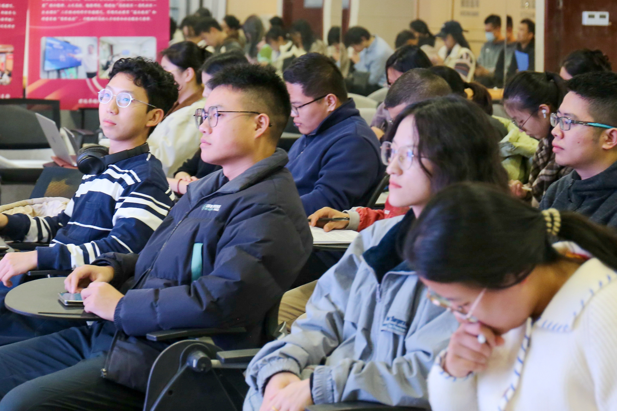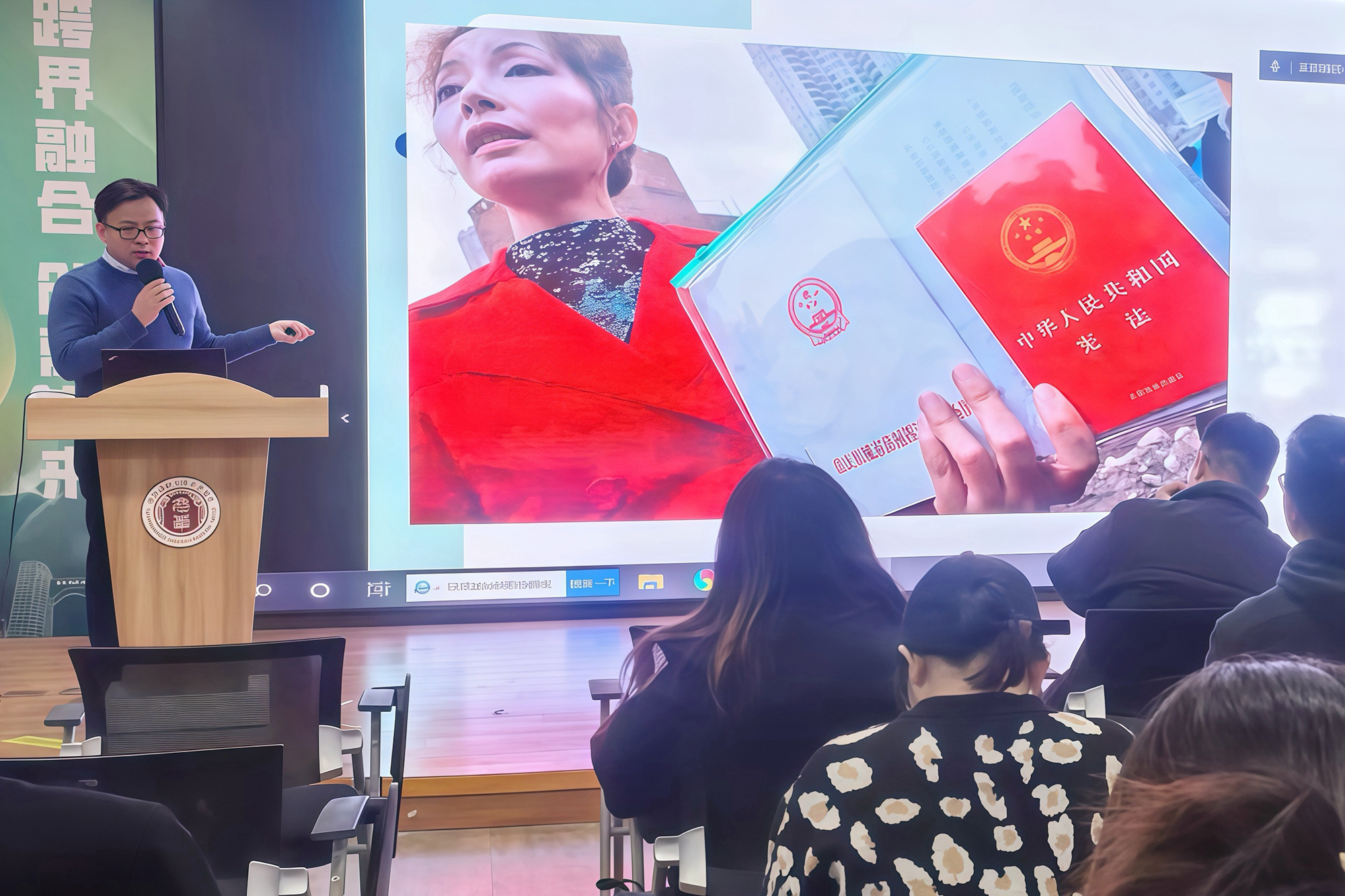 为大力弘扬宪法精神,传递法治声音,在校党委宣传部的指导下,校党委学(研)工部(处)联合法学院师生志愿者走入学生社区,在闵行校区学生发展空间报告厅为在校师生开展“国家宪法日”普法宣讲活动。