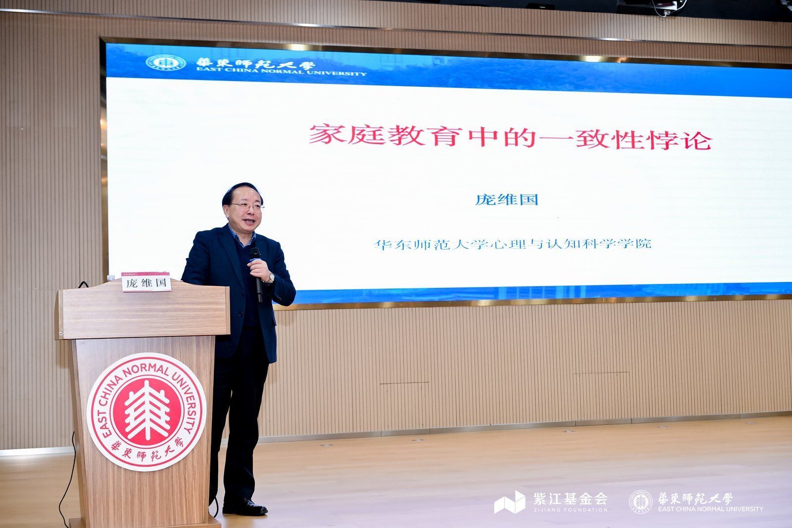 庞维国教授聚焦“家庭教育的‘一致性悖论’”,提出了科学系统的家校共育策略,并结合案例生动阐释了家校如何在不同场景中协同支持学生成长。他强调,家校共育应不仅着眼于学业提升,更需重视心理健康、良好习惯和综合素质的全面发展,帮助学生在健全的支持体系中实现自我提升。