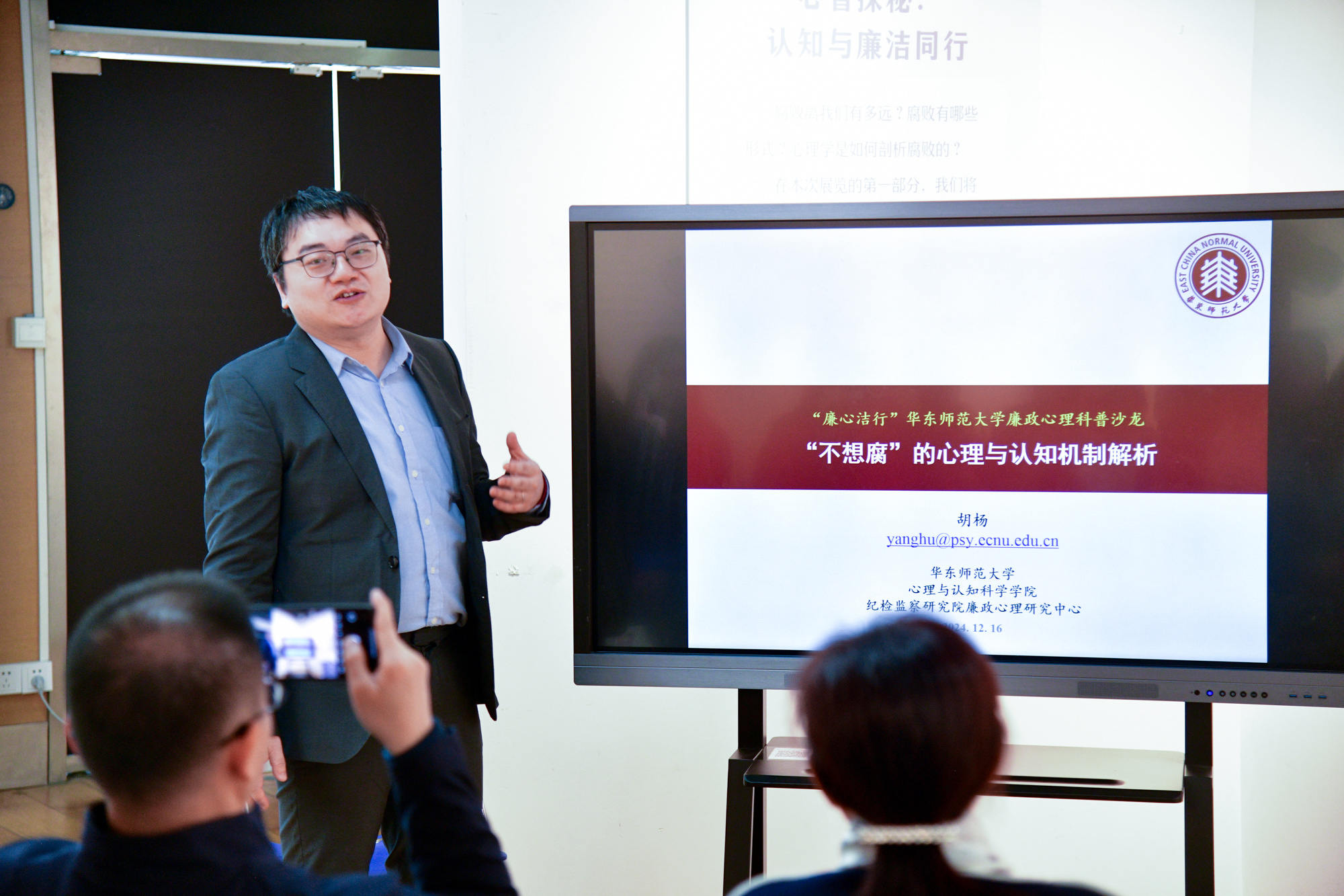 开幕式后,中国社会科学院社会学研究所社会心理学研究室副主任谭旭运作“‘去腐生肌’:腐败感知变化及其对廉洁教育的启示”专题报告,心理与认知科学学院副教授胡杨作“‘不想腐’的心理与认知机制解析”专题报告。两位老师从不同的学术视角带领观众进一步探讨腐败背后的心理认知。