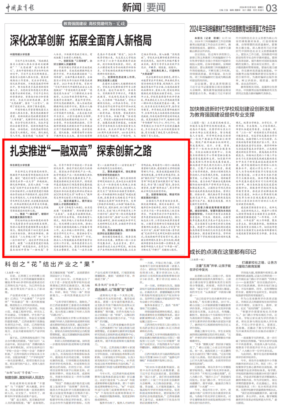 12月18日,《中国教育报》三版发表3245澳门新莆京党委署名文章《扎实推进“一融双高” 探索创新之路》。