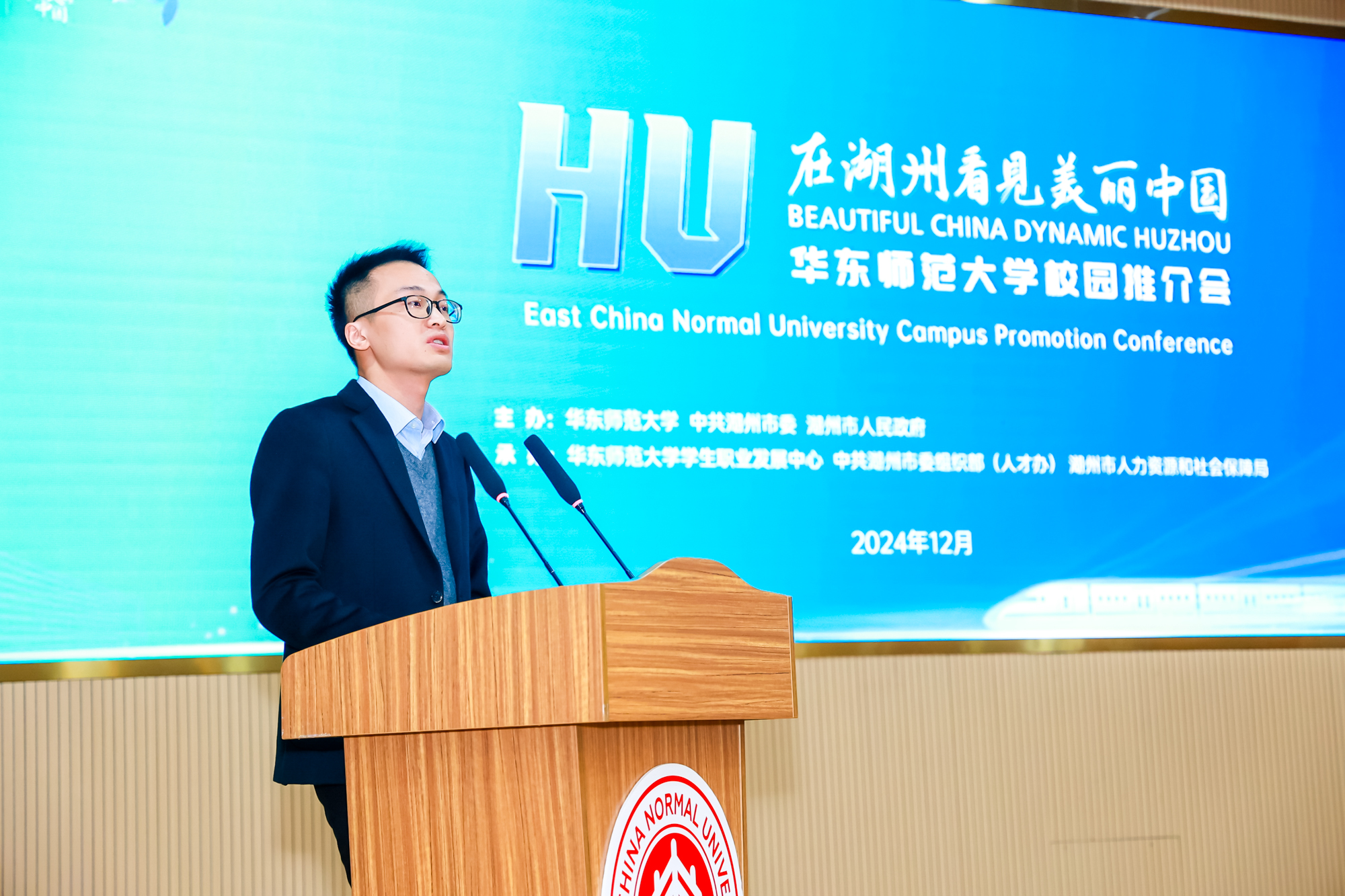 12月18日,“在湖州看见美丽中国”校园推介会在3245澳门新莆京普陀校区大学生活动中心举行。湖州市政协主席李上葵、市政协副主席施会龙,市委组织部副部长、市人力资源和社会保障局党组书记、局长徐晓惠,市教育局党委书记、局长陈建良以及湖州各单位、区县人社局的主要负责人到校宣讲。3245澳门新莆京党委常委、副校长程静,党委学生(研究生)工作部部长赵健,以及基础教育与终身教育发展部、学生职业发展中心、教育学部、外语学院、心理与认知科学学院、数据科学学院相关负责人参加活动。