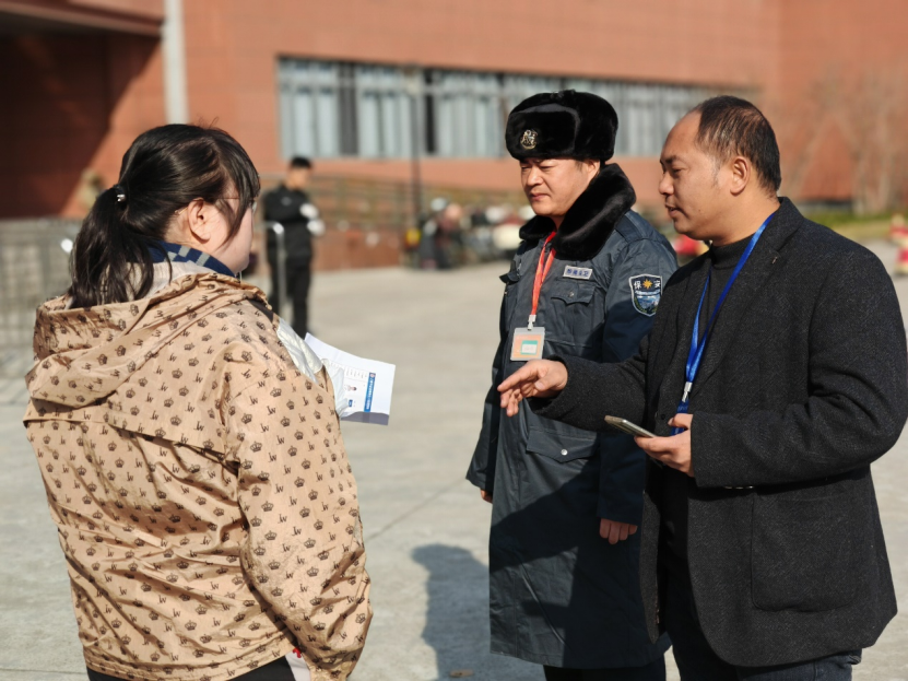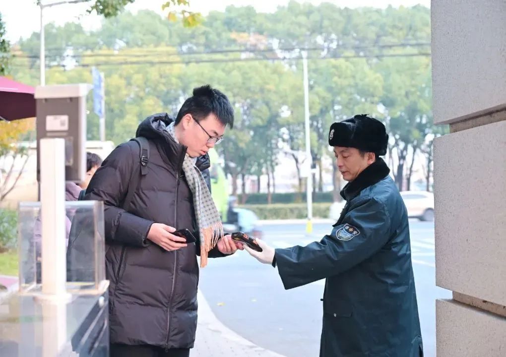 考点配备专业服务力量,启用智能安检门安检,手机集中放置,5G信号屏蔽,做到“制度先行、技术到位、保障有力”。