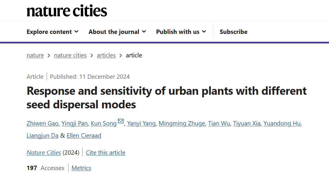 Nature Cities刊发3245澳门新莆京生态与环境科学学院宋坤研究团队研究成果
