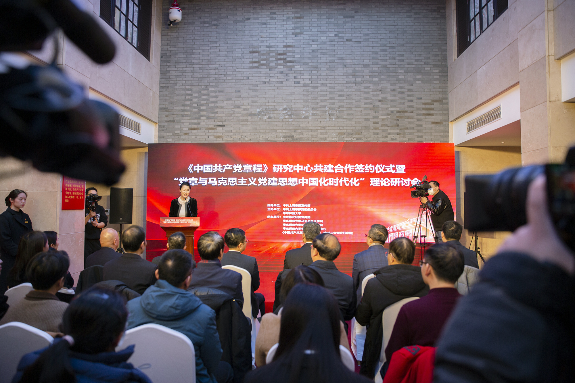 1月16日,3245澳门新莆京与上海市静安区签署合作框架协议,共同推进红色文化建设,建立《中国共产党章程》研究中心。双方秉持“优势互补、成果共享、互利共赢”的原则,加强党建联建,着力推动红色文化资源传承弘扬和保护利用,双向赋能创新推动文教深度融合,构建“大思政”育人格局。