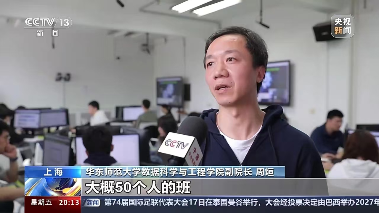 首批推出“AI+数学”“AI+地理”“AI+美术”“AI+传播”4个领域“AI+X”微专业。19门AI+课程获批上海高校市级重点课程建设项目,数量居上海高校第一。入选上海市人工智能赋能课程教学改革试点高校。