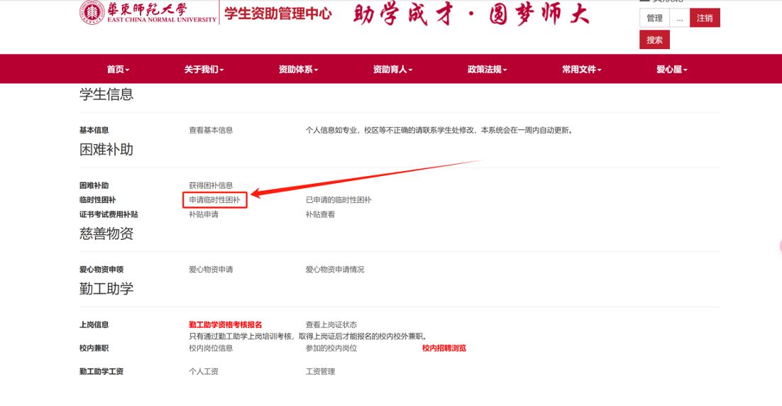 第二步:在“临时性困补”栏目,点击“申请临时性困补”;