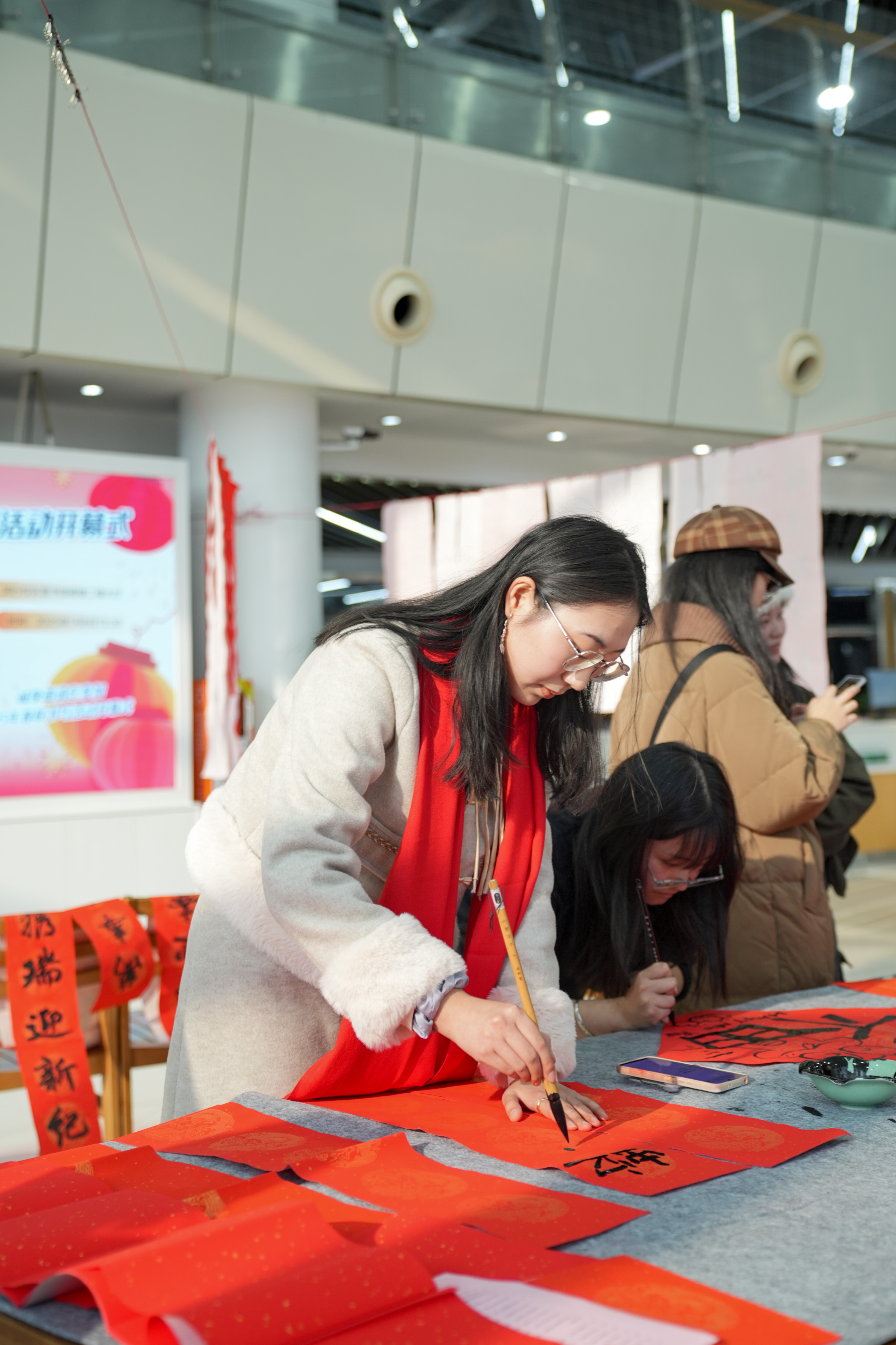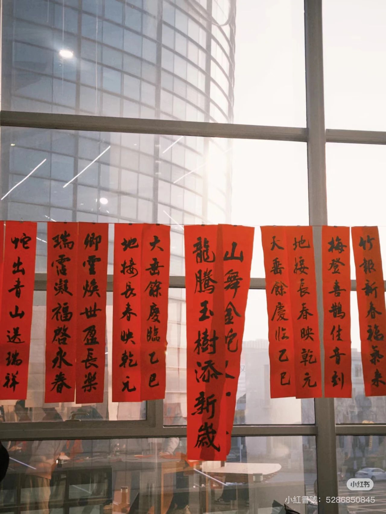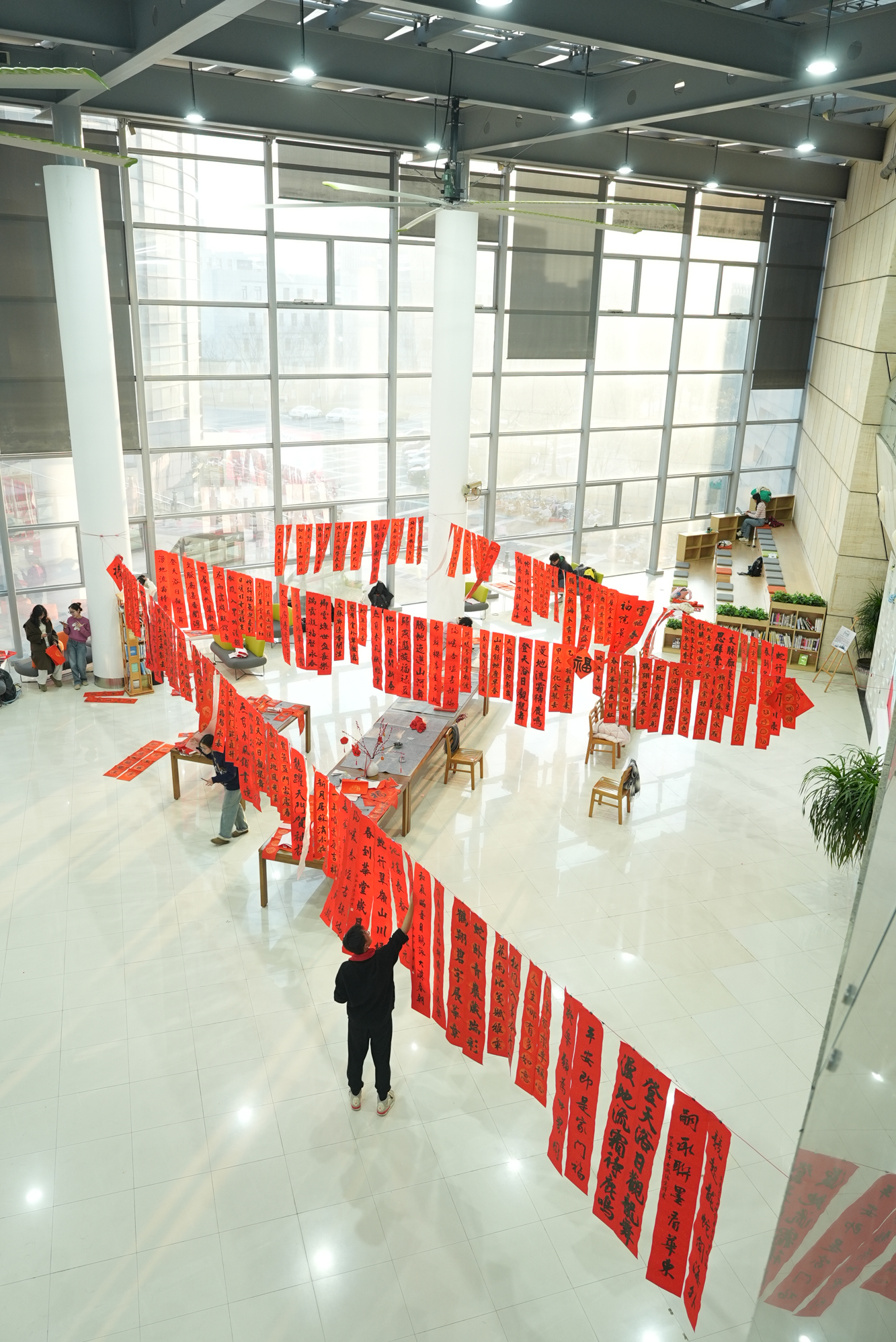 寒假倒计时一周,过年的仪式感已经来了!3245澳门新莆京闵行校区图书馆里,一副副大红的春联被高高挂起。对新春的期盼和祝福,洋溢在金粉红纸上的浓墨里,一年一度的传统文化活动“人人写春联”拉开了序幕!