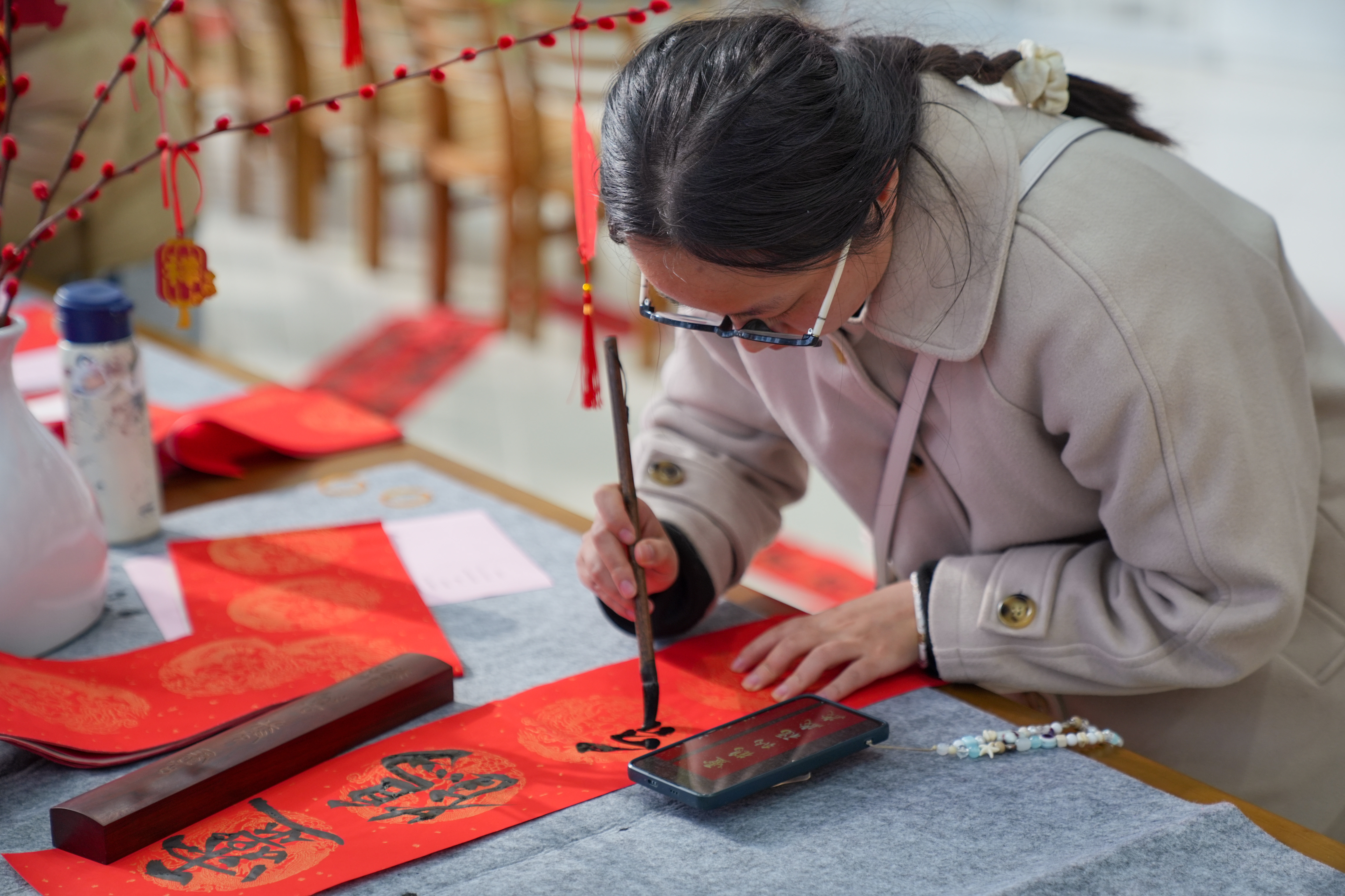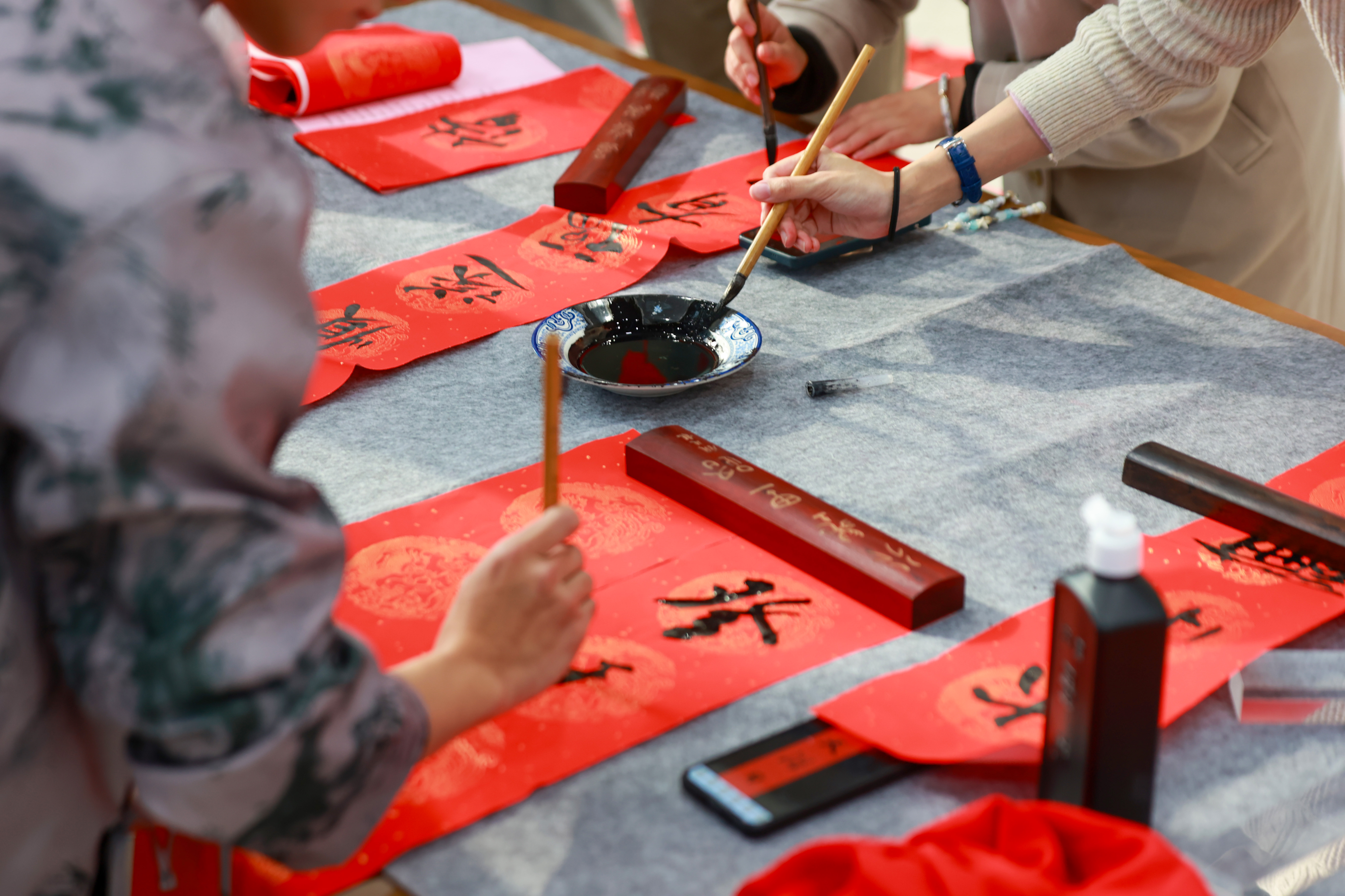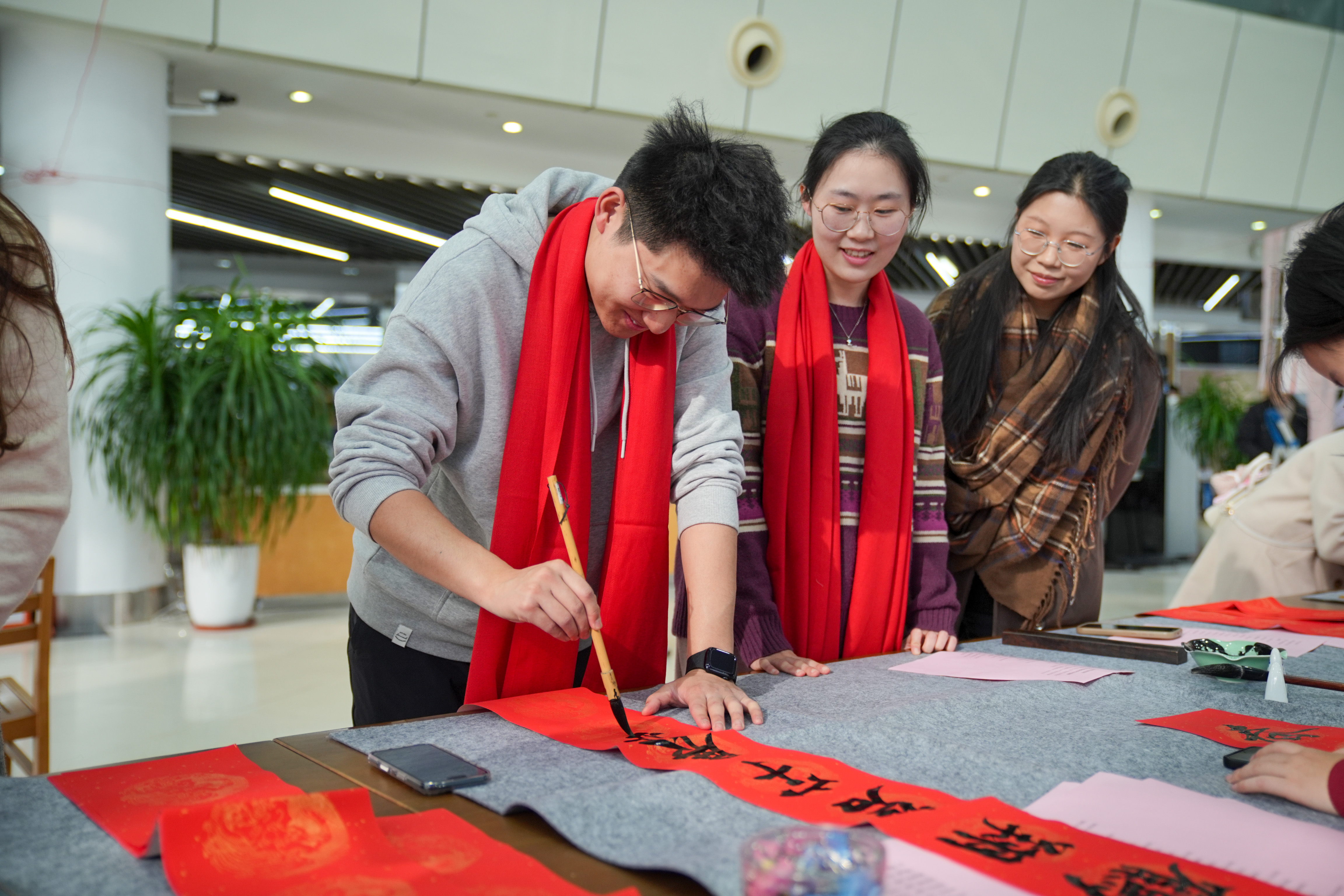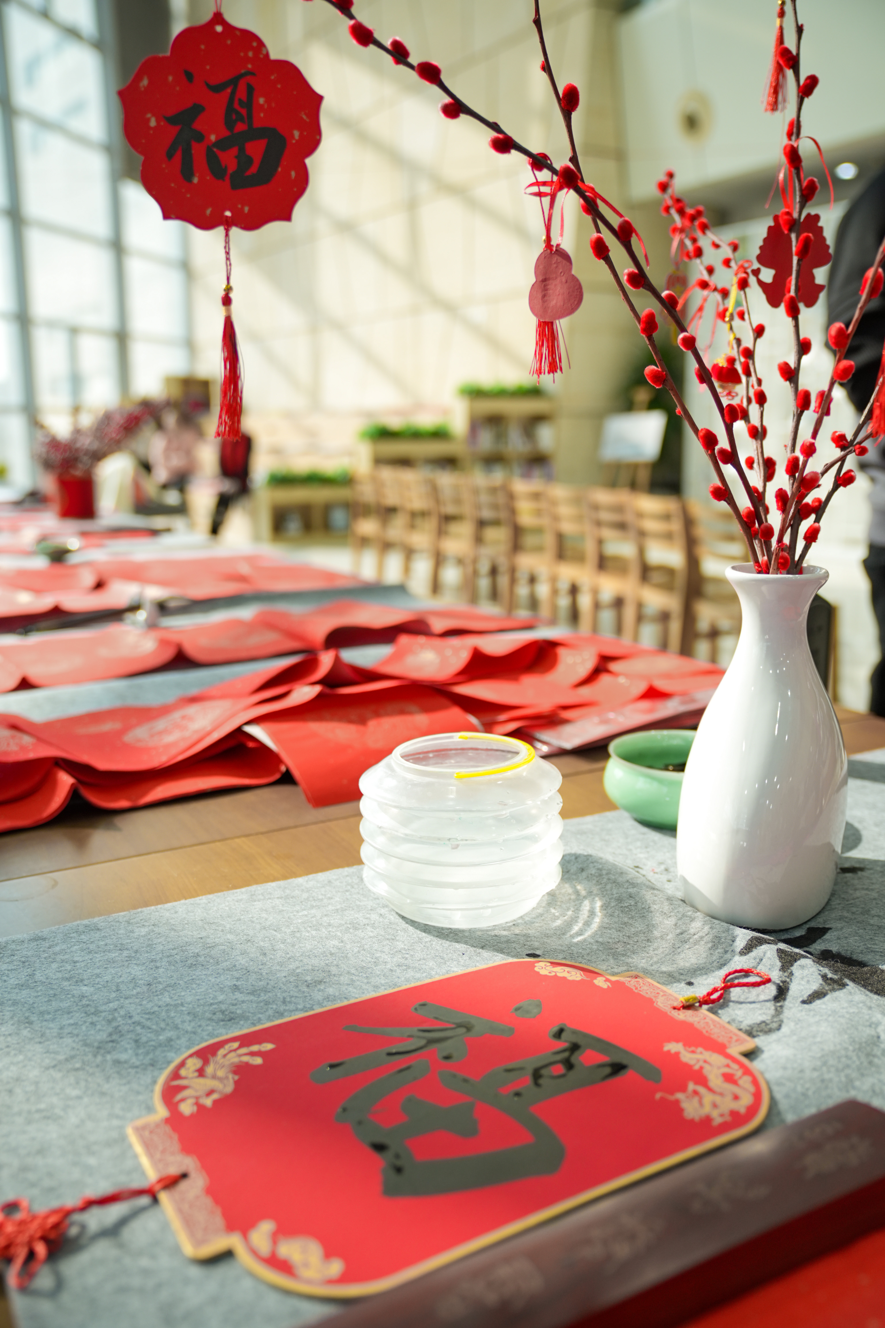 寒假倒计时一周,过年的仪式感已经来了!3245澳门新莆京闵行校区图书馆里,一副副大红的春联被高高挂起。对新春的期盼和祝福,洋溢在金粉红纸上的浓墨里,一年一度的传统文化活动“人人写春联”拉开了序幕!
