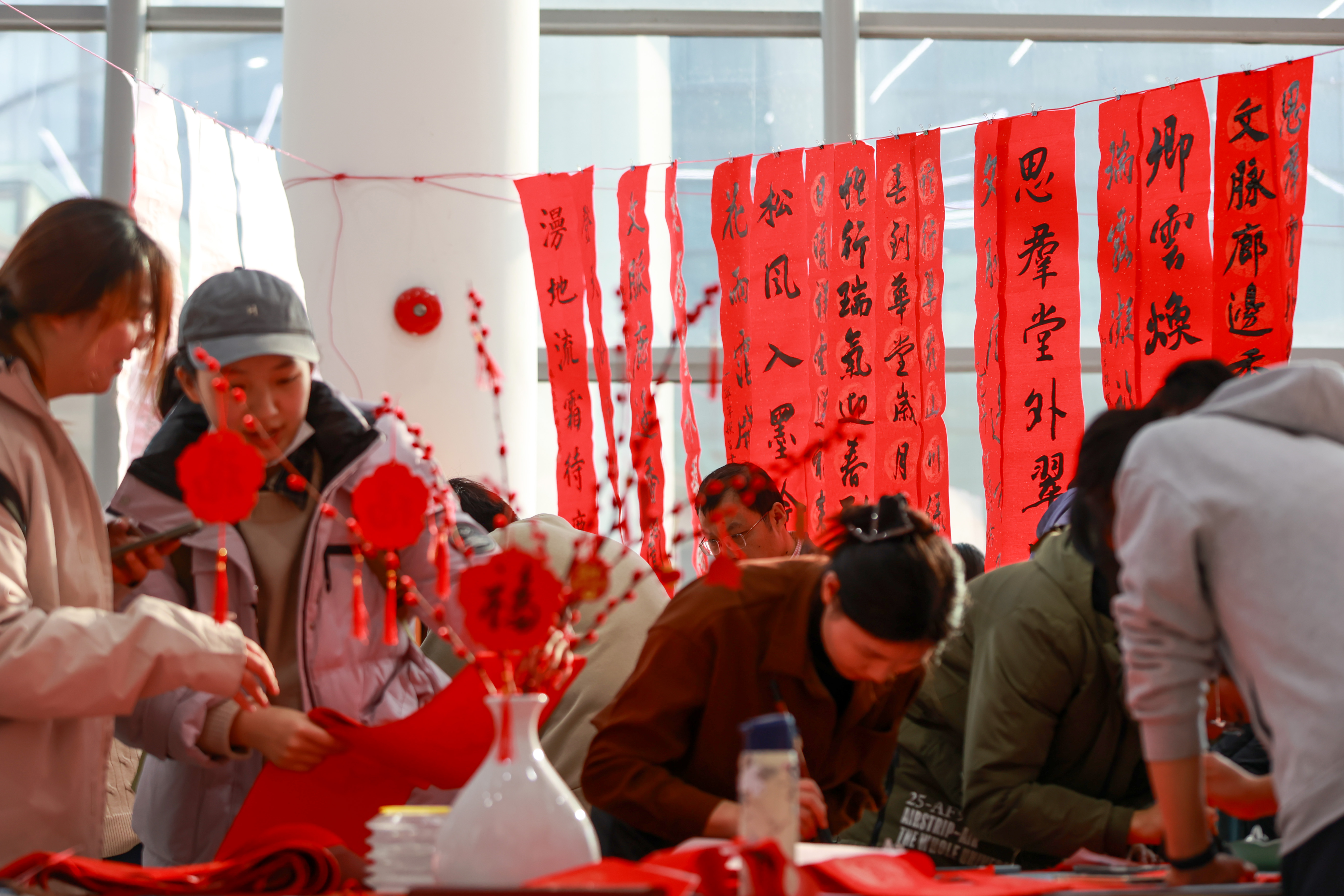 美术学院书法专业的学生挥毫泼墨、笔走龙蛇,一副副满载美好祝福的春联和“福”字跃然纸上。