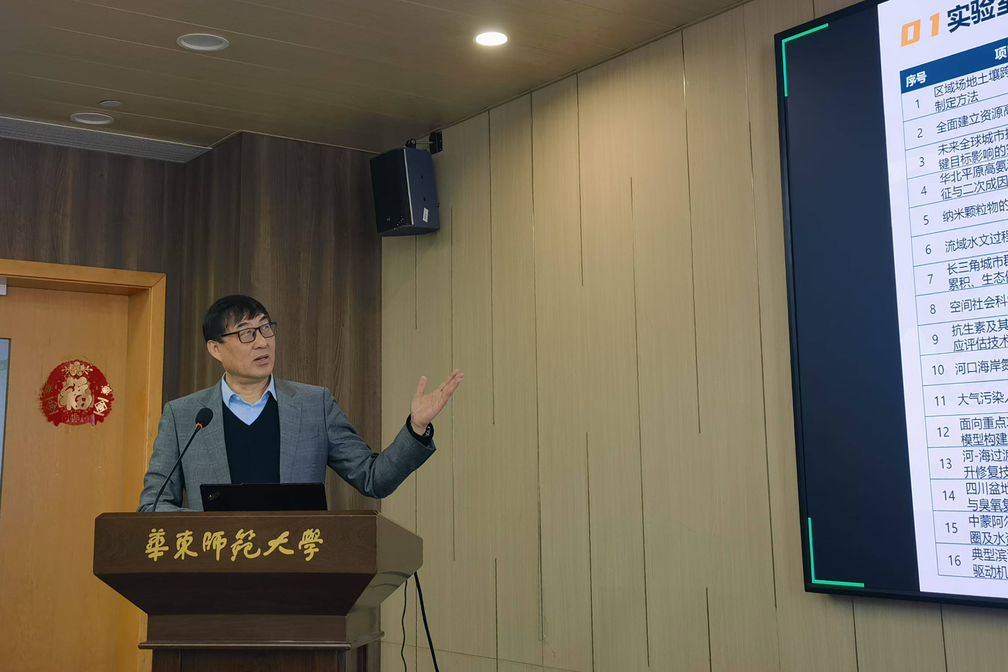 1月6日,华东师大地理信息科学教育部重点实验室第五届学术委员会2024年度学术年会以线上线下结合的方式召开,线下会议设在闵行校区河口海岸大楼举行。实验室学术委员会主任、中国科学院生态环境研究中心傅伯杰院士,西南交通大学朱庆教授,南京大学李满春教授,河海大学杨桂山研究员,江西师范大学林珲教授,华东师大副校长施国跃教授,科技处杨海波处长,重点实验室刘敏教授、李军院士、黎夏教授,地理科学学院院长王军、党委书记谭红岩,以及实验室师生共约60余人参加此次会议,北京大学秦其明教授、中国科学院地理与资源研究所方创琳研究员、中国科学院亚热带农业生态研究所王克林研究员等委员在线上参会。开幕式由杨海波主持。