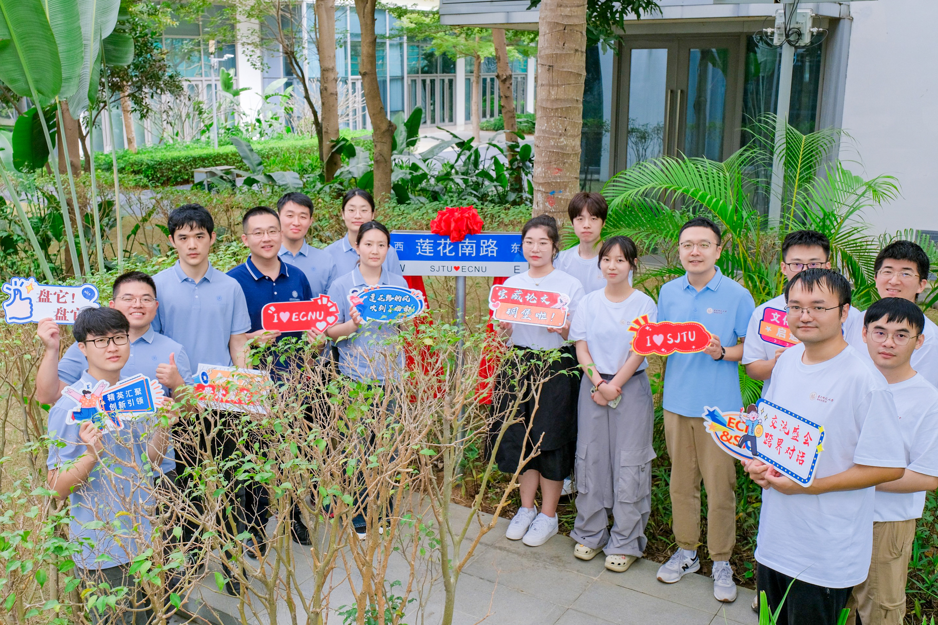 在上海闵行,有这样一条路——莲花南路,一侧是华东师大,一侧是上海交大。两校门对门,手牵手,共同谱写建设教育强国的新时代篇章。从思源湖到樱桃河,我们的友情是莲花南路的相对相望。从上海到海南,跨越千山万水,科创的风吹到了天涯,两校的比邻之谊,延展到了海角。