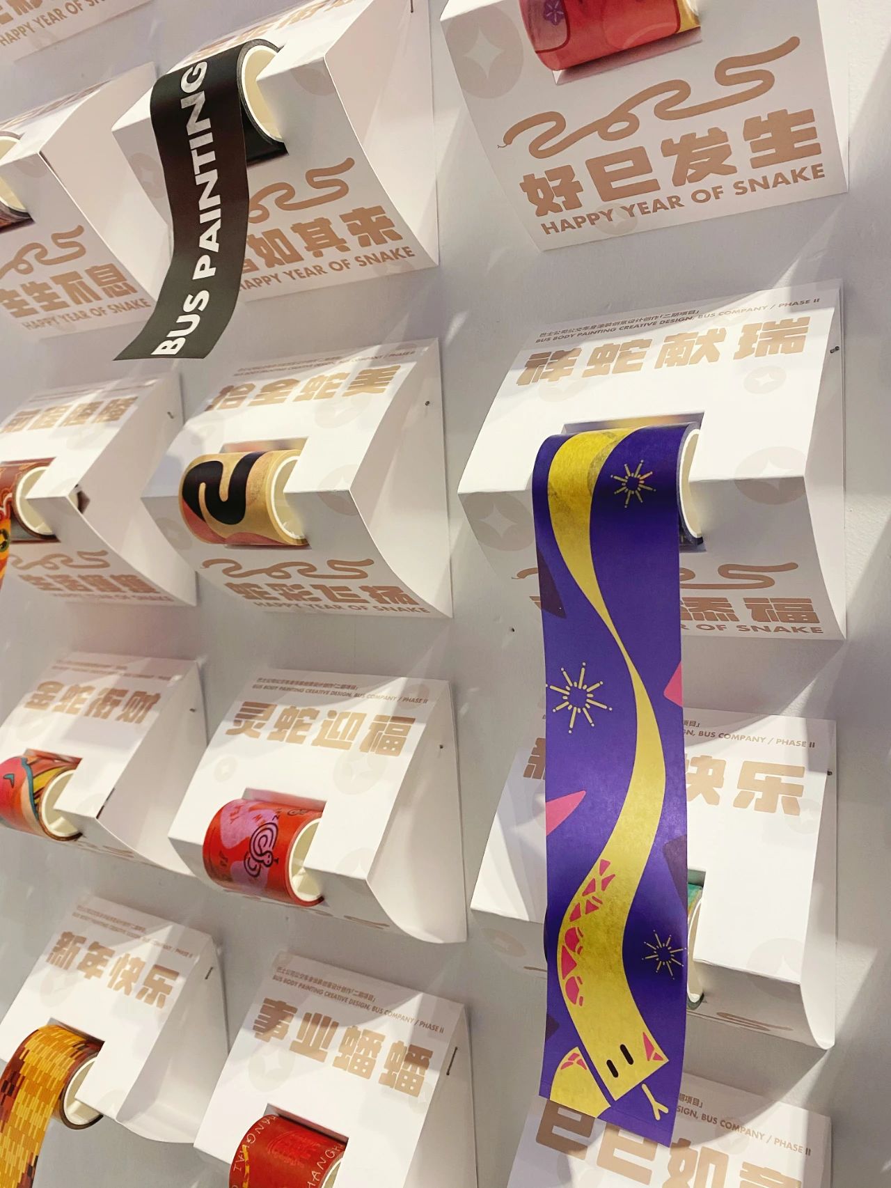 作品简述:本设计以金蛇舞动迎新春为主题,搭配经典红金色调,旨在体现春节喜庆洋洋氛围的同时,展示上海“百年公交”悠久历史的底蕴。传统色调与现代平面语言并置,融合了对美的追求和对传统的尊重,希望为市民和游客带来愉悦的视觉体验。