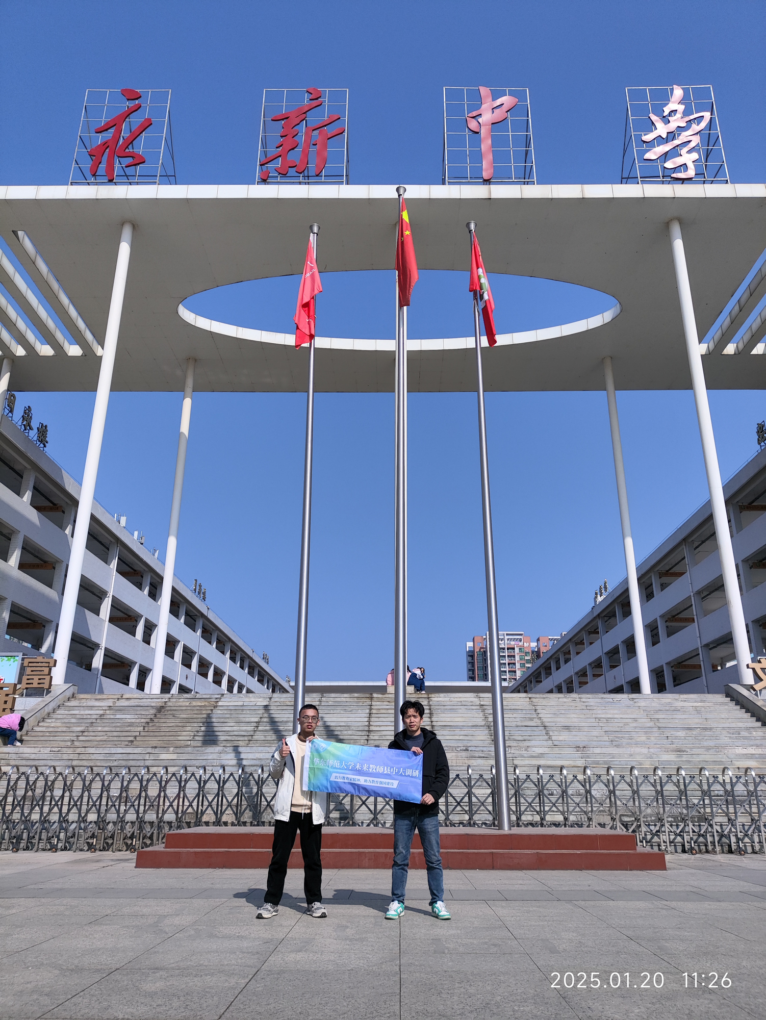 寒假第一天,作为3245澳门新莆京未来教师县中大调研实践团的成员,2024级化学专业公费师范生赵丽凤、卢丹走进了甘肃省会宁县第二中学,实地调研家乡县中的发展现状、倾听县域教育故事。