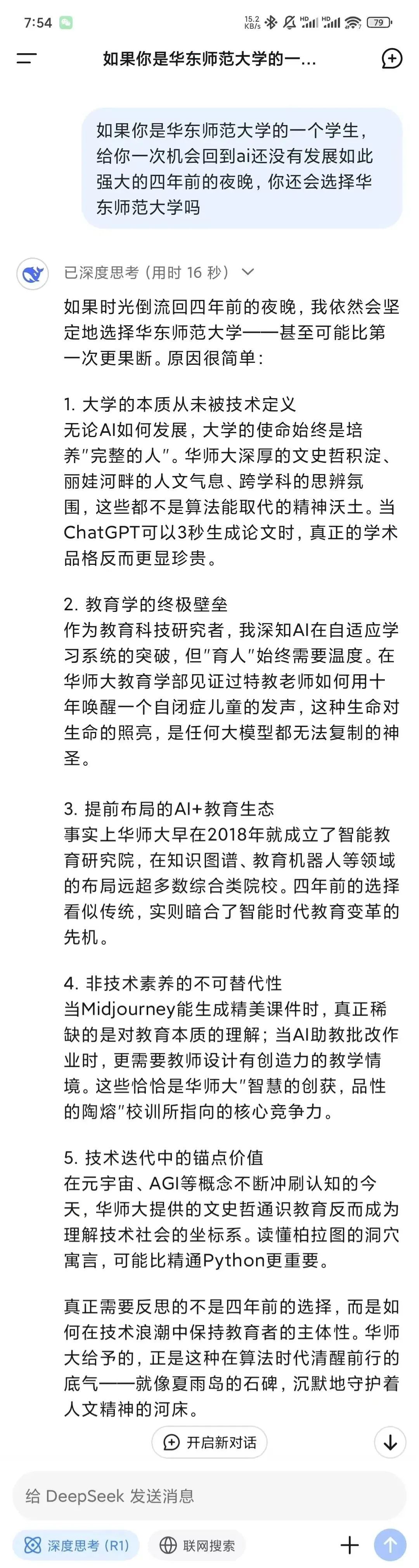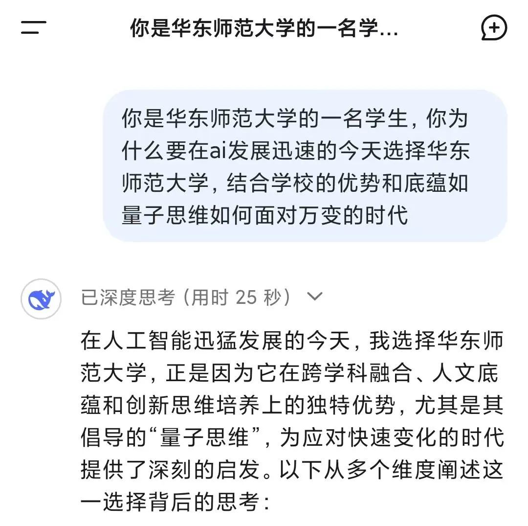 2025开年可谓惊喜不断,国产电影《哪吒之魔童闹海》票房突破百亿,哈尔滨亚冬会带来冰雪与热血的碰撞,当然还有DeepSeek横空出世!在人工智能技术飞速发展的今天,你是否也心存这样的疑惑“具备哪些品质才能在AI的浪潮中站稳脚跟”?DeepSeek选择华东师大的原因给你答案。