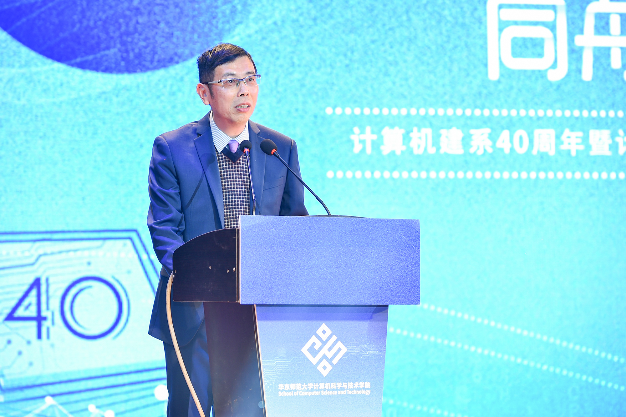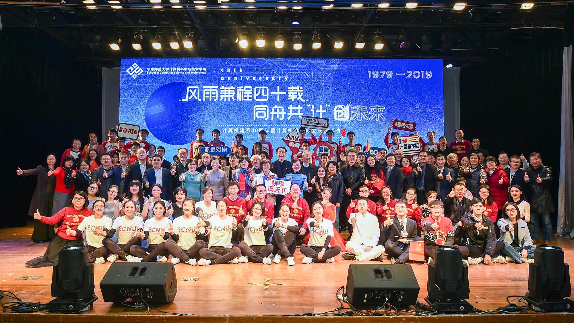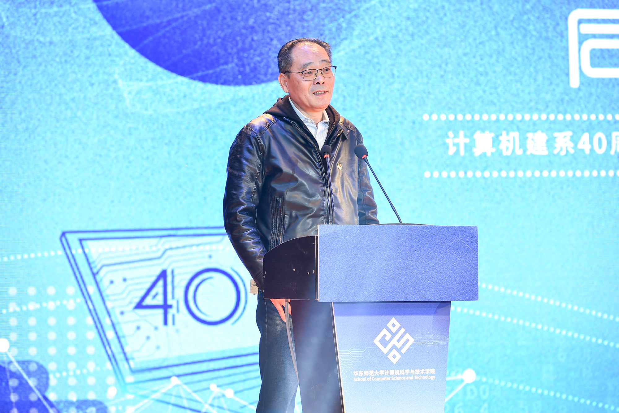 计算机建系四十周年暨计算机学院成立联欢会在中山北路校区思群堂举行。华东师大副校长、信息学部主任李志斌,华东师大原党委副书记杜公卓,华东师大原副校长、计算机系第二任系主任陶增乐,计算机系第三任系主任刘淦澄,计算机系第四任系主任黄国兴,计算机系第五任系主任杨宗源,计算机系第六任系主任、通信与电子工程学院院长吕岳,机关党工委书记王淑仙,实验室与设备处处长黄岚兰,通信与电子工程学院党委书记郑正奇,数据科学与工程学院院长钱卫宁等出席活动,学校各职能部门领导、学部教职工代表、学院校友会理事、退休教师、校友、全院师生共700人共同参加。本次庆祝活动分为“序曲·光阴的故事” “传承·岁月的坚守”“担当·青春的诠释”三个篇章。“序曲”和“传承”篇章由计算机科学与技术学院副院长贺樑主持。