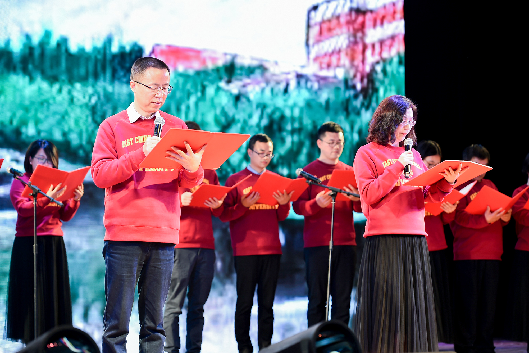 嘉宾及校友们欣赏了精彩纷呈的联欢节目,师生同乐为计算机系40岁生日献礼,联欢活动在高唱《我和我的祖国》中结束。